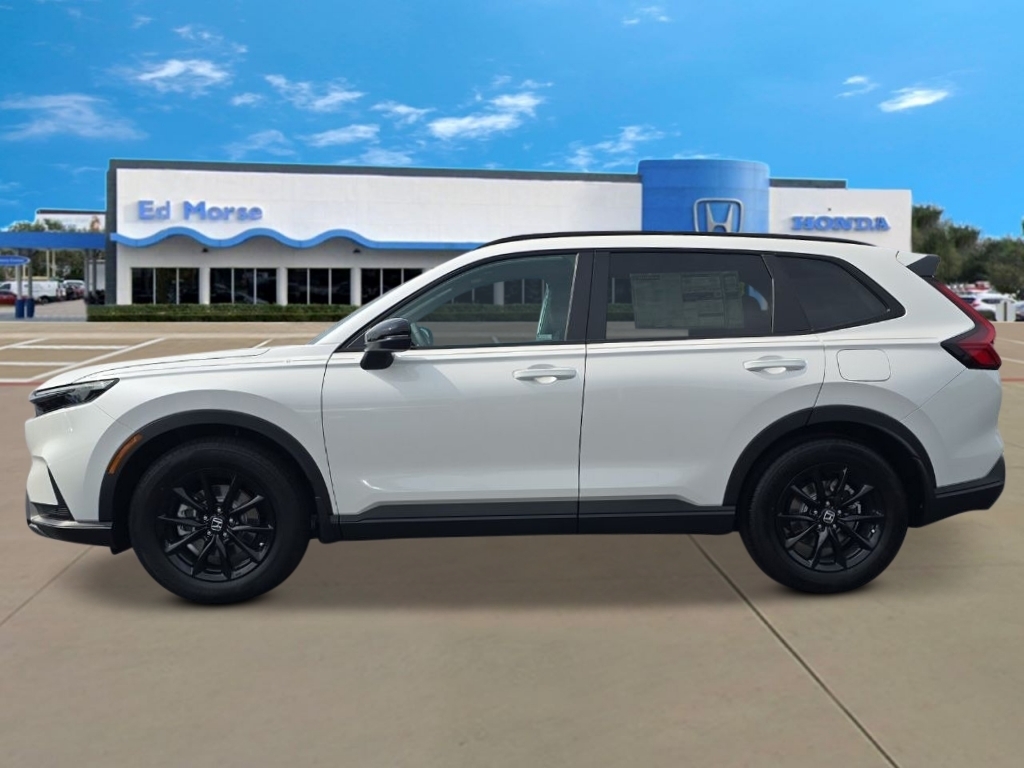 Platinum White Pearl 2026 Honda CR-V Hybrid Sport-L 43/36 City/Highway MPG 4-Wheel Disc Brakes, 8 Speakers, ABS brakes, Adaptive Cruise Control: Adaptive Cruise Control (ACC) with Low-Speed Follow, Air Conditioning, Alloy wheels, Apple CarPlay/Android Auto, Auto High-beam Headlights, Auto-dimming Rear-View mirror, Automatic temperature control, Blind Spot Information (BSI) System warning, Brake assist, Bumpers: body-color, Compass, Delay-off headlights, Driver door bin, Driver vanity mirror, Dual front impact airbags, Dual front side impact airbags, Electronic Stability Control, Exterior Parking Camera Rear, Four wheel independent suspension, Front anti-roll bar, Front Bucket Seats, Front Center Armrest, Front dual zone A/C, Front reading lights, Fully automatic headlights, Heated door mirrors, Heated Front Bucket Seats, Heated front seats, Illuminated entry, Knee airbag, Leather Seat Trim, Leather Shift Knob, Leather steering wheel, Low tire pressure warning, Memory seat, Occupant sensing airbag, Outside temperature display, Overhead airbag, Overhead console, Panic alarm, Passenger door bin, Passenger vanity mirror, Power door mirrors, Power driver seat, Power Liftgate, Power moonroof, Power passenger seat, Power steering, Power windows, Radio data system, Radio: 320-Watt AM/FM Audio System, Rear anti-roll bar, Rear reading lights, Rear seat center armrest, Rear side impact airbag, Rear window defroster, Rear window wiper, Remote keyless entry, Security system, Speed control, Speed-sensing steering, Speed-Sensitive Wipers, Split folding rear seat, Spoiler, Steering wheel mounted audio controls, Telescoping steering wheel, Tilt steering wheel, Traction control, Trip computer, Turn signal indicator mirrors, Variably intermittent wipers, and Wheels: 18Berlina Black.