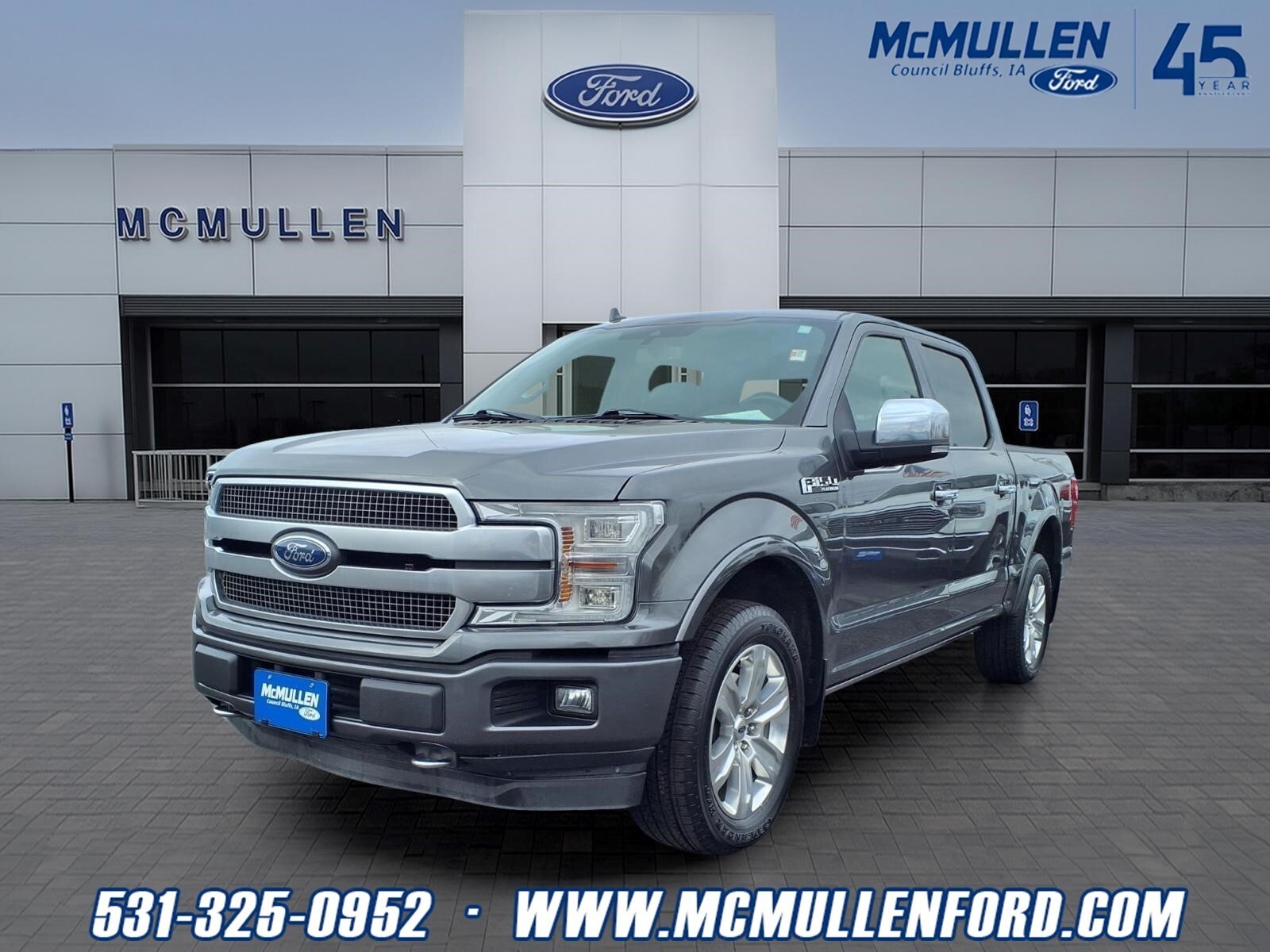 Step up to our truly amazing Certified 2019 Ford F-150 Platinum SuperCrew 4X4 in Magnetic! Powered by a Twin TurboCharged 3.5 EcoBoost V6 delivers 375hp connected to a 10 Speed Automatic transmission for amazing road authority. Youll own the road in this Four Wheel Drive machine while seeing nearly 25mpg on the highway, plus enjoy incredible towing and payload capacity. Ford serves up luxury and capability and looks phenomenal with its polished wheels! Platinum offers a customizable productivity screen, remote start, pushbutton start, multiple power points, dual-zone automatic climate control, ambient lighting, and dynamic hitch assist. Find your spot in the multi-contour heated/cooled leather front seats and grip the heated leather-wrapped steering wheel. Youll love that SYNC 3 and SYNC Connect provides everything you need to get in touch, be entertained, and stay informed with enhanced voice recognition, touchscreen navigation, available WiFi, impressive audio, smartphone integration, and more! Fords lean muscular machine offers a high-strength military-grade aluminum alloy body, and a high-strength steel frame provides peace of mind. It also takes care of you with curve control, ABS, trailer sway control, a multitude of airbags, and MyKey. Enjoy full power behind the wheel of our F-150 Platinum! Save this Page and Call for Availability. We Know You Will Enjoy Your Test Drive Toward Ownership!