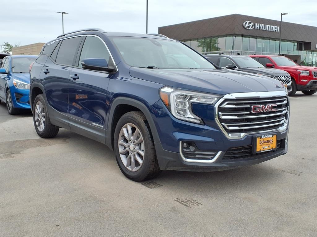 Edwards Peace of Mind Certified Warranty, Free Vehicle History Report, Edwards Certified Pre-owned 7 Year 100K Powertrain, AWD, Heated front seats, Heated steering wheel, Power door mirrors, Power Liftgate, Power passenger seat. 24/28 City/Highway MPG 2023 Terrain GMC SLT Marine Metallic Priced below KBB Fair Purchase Price! AWD 9-Speed Automatic 1.5L DOHC Odometer is 6392 miles below market average! 24/28 City/Highway MPG