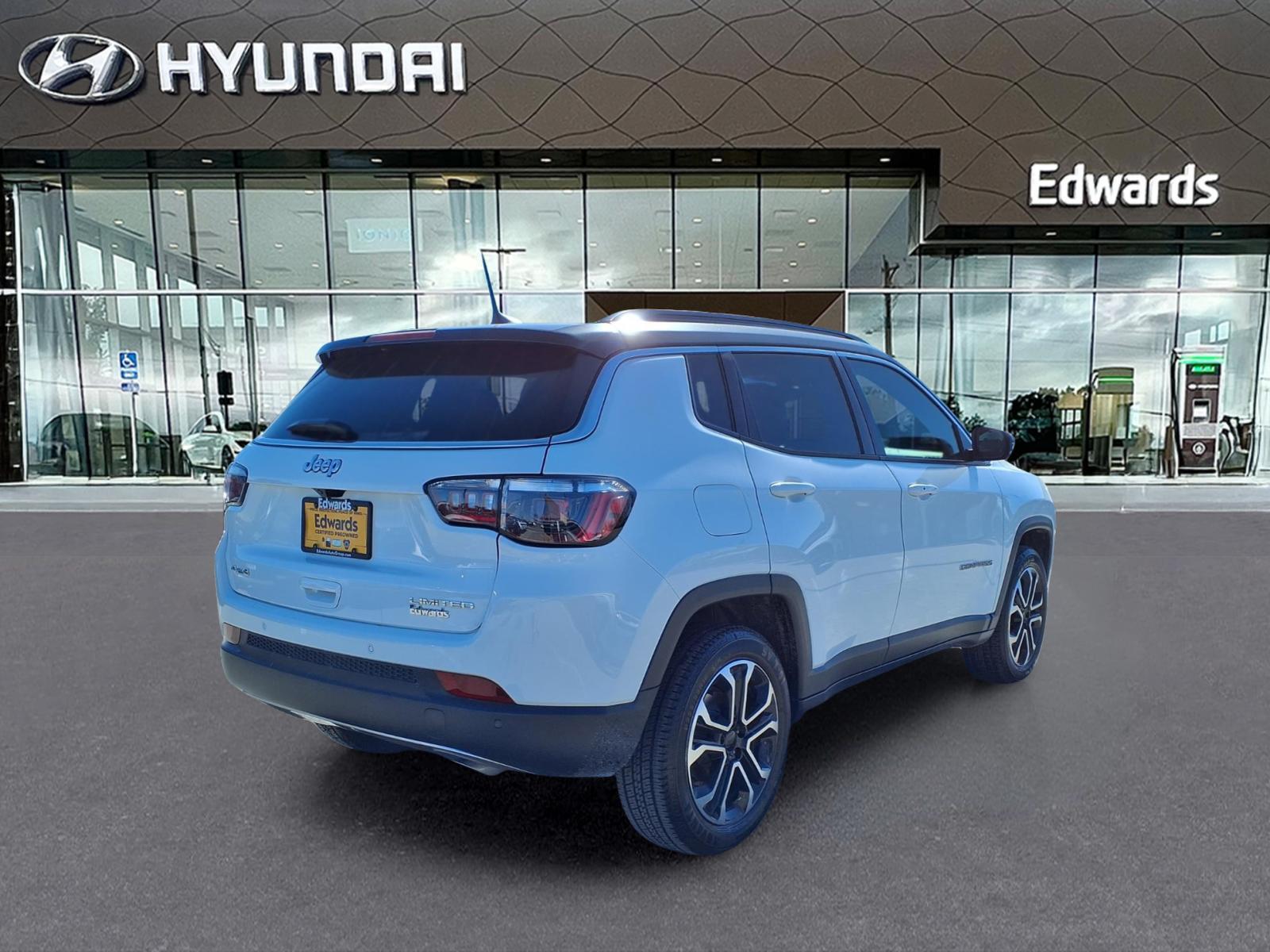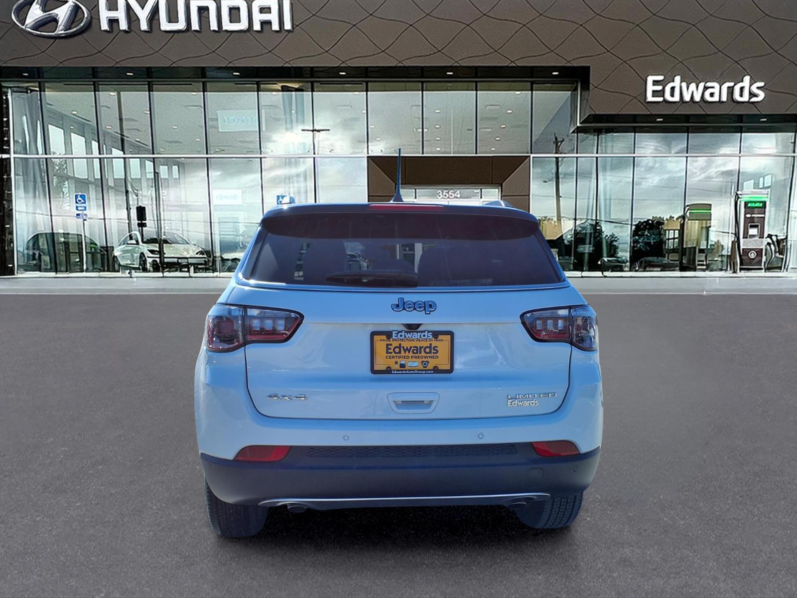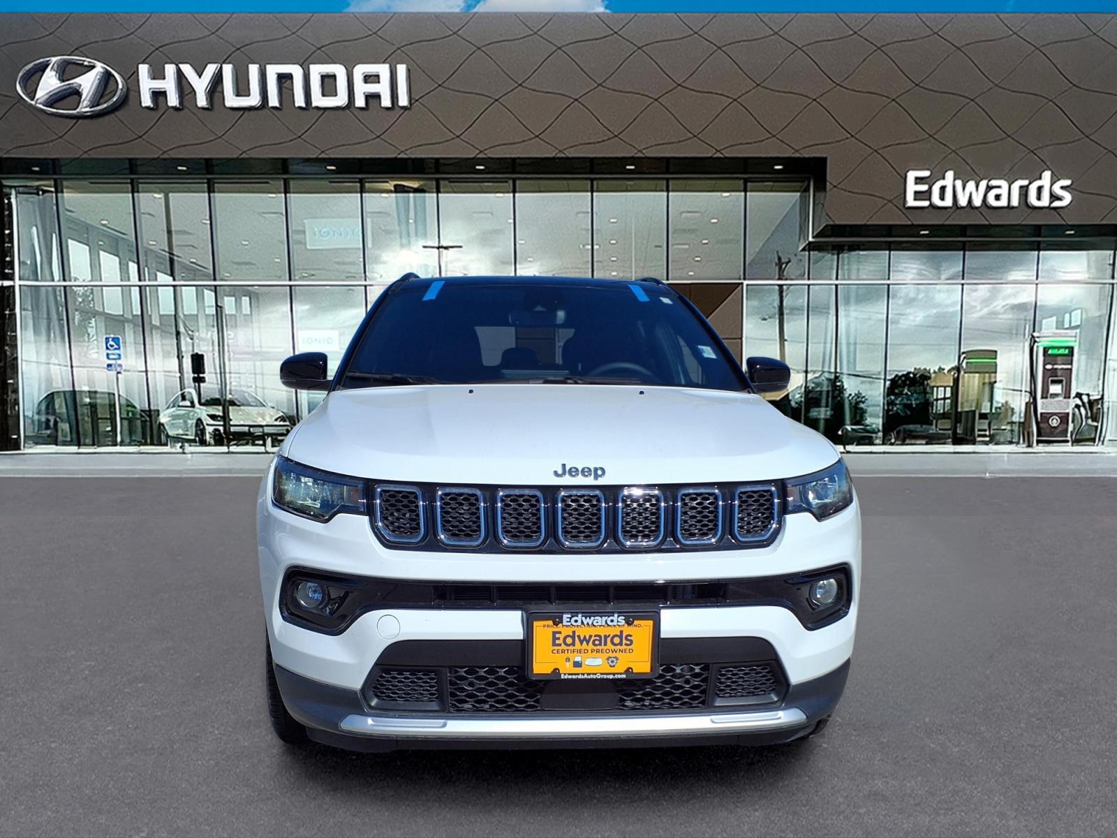 Discover the perfect blend of style, capability, and convenience with the 2023 Jeep Compass Limited. This exceptional SUV is designed to elevate your driving experience, offering a compelling combination of sophisticated features and impressive performance. - Edwards Peace of Mind Certified Warranty: 6 month / 6,000 mile limited warranty coverage - Quick Order Package 29G - Uconnect 5 with 10.1Display - SiriusXM Radio Service - Automatic temperature control - Power driver seat - 4-Wheel Disc Brakes - ABS brakes - ParkView Rear Back-Up Camera - Auto High-beam Headlights - Leather Shift Knob - Leatherette Seats - Heated front seats Powered by a 2.0L I4 DOHC engine and equipped with an 8-Speed Automatic transmission, this Compass Limited delivers a dynamic and efficient driving experience. With its impressive 24 city / 32 highway MPG, youll enjoy exceptional fuel economy without compromising on performance. The Jeep Compass Limiteds impressive list of features is designed to elevate your daily commute and weekend adventures. From the advanced Uconnect 5 infotainment system with a large 10.1touchscreen display to the convenient dual-zone automatic climate control, this SUV offers unparalleled comfort and connectivity. This Compass has been meticulously inspected and certified by our team of experts, ensuring it meets the highest standards of quality and reliability. With the Edwards Peace of Mind Certified Warranty, you can drive with confidence, knowing your investment is protected. Discover the perfect balance of style, capability, and technology with the 2023 Jeep Compass Limited. Experience the difference for yourself by scheduling a test drive today. Were confident youll be impressed by this exceptional SUV and its ability to elevate your driving experience.