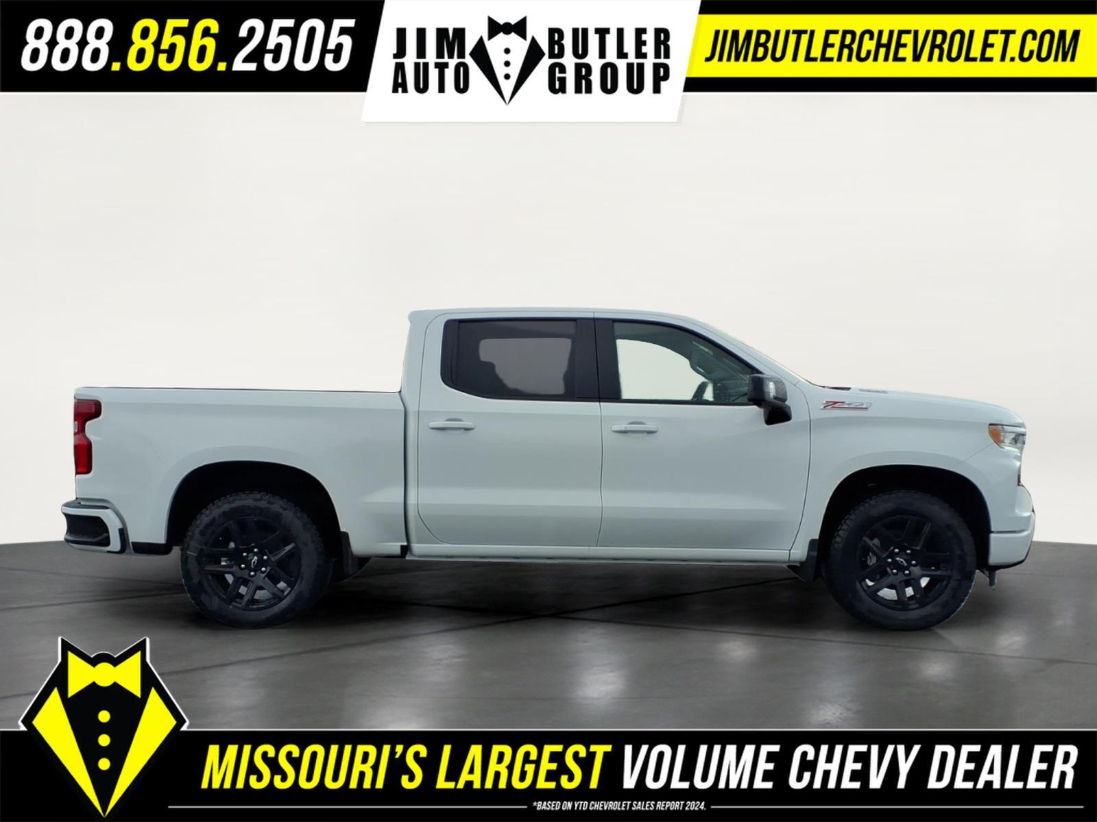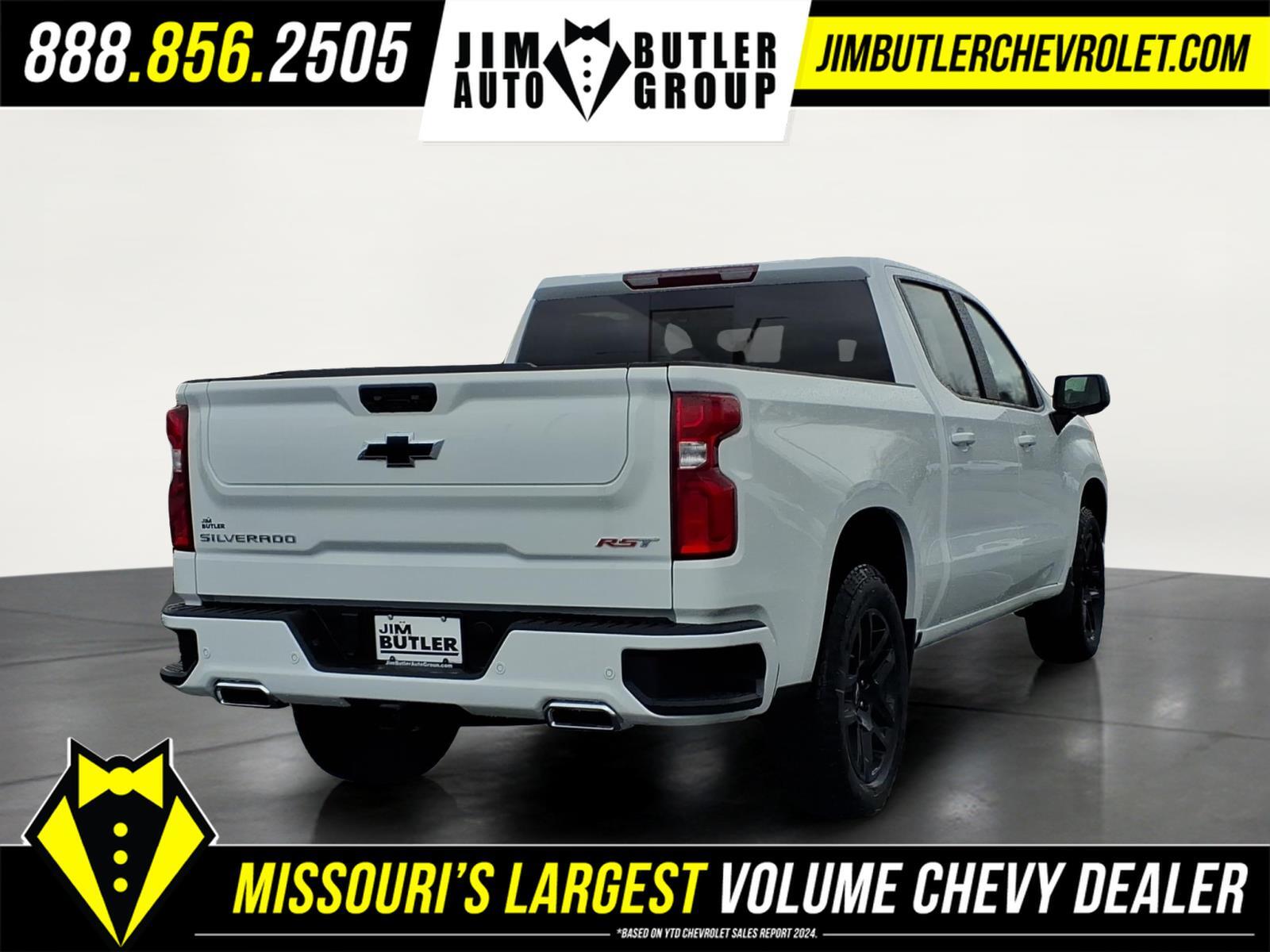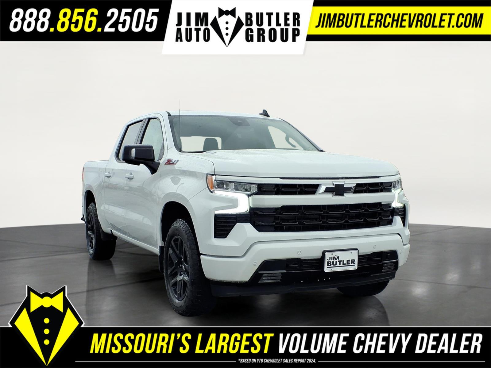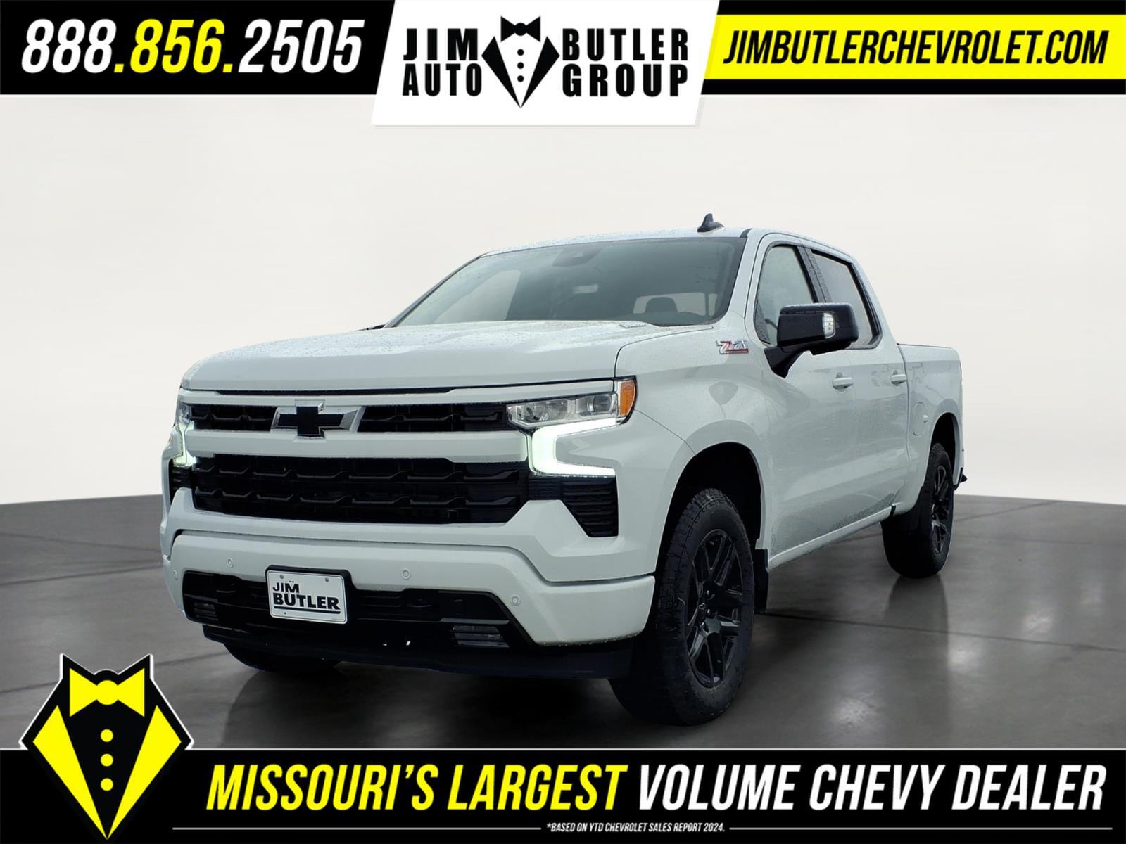 Price does not include tax, title, license, or administration fees. Price does include: $1250 - Customer Cash. Exp. 04/30/2026 $750 - Bonus Cash. Exp. 04/30/2026 2026 Chevrolet Silverado 1500 RST RST Summit White 4WD 10-Speed Automatic 3.0L I6 Please call today (888) 475-3191. We are proud to be a GM Mark of Excellence Dealership. Come see why we are the #1 Chevrolet dealership in the Midwest. On top of that we have also been awarded Dealer of the year the last 11 years. Proudly serving: St. Louis, South County, Webster Groves, Creve Coeur, Kirkwood, Maryland Heights, Sullivan, Rolla, Columbia, Fenton, Chesterfield, St. Charles, Kansas City, Springfield, Jefferson City, and all of great Missouri and Illinois. While we make every attempt to ensure pricing accuracy. Dealer not responsible for computer or human error, dealer reserves the right to change prices due to human or computer error. In order to put a 24 hour hold deposit on vehicles, Financing must be secured thru Jim Butler Chevrolet Business Office and Cash Deals must be Electronically Transferred within Six Hours. All Star Edition Plus (Wheels: 20x 9Painted Aluminum), Convenience Package (10-Way Power Driver Seat with Lumbar, 120-Volt Bed Mounted Power Outlet, 120-Volt Interior Power Outlet, Dual Rear USB Ports (charge Only), Dual-Zone Automatic Climate Control, Electric Rear-Window Defogger, Heated Driver and Front Outboard Passenger Seats, Heated Steering Wheel, Keyless Open and Start, LED Cargo Area Lighting, Manual Tilt/Telescoping Steering Column, Remote Vehicle Starter System, Theft Deterrent System (unauthorized Entry), and Wrapped Steering Wheel), Convenience Package II (Hitch Guidance with Hitch View, in-Vehicle Trailering System App, Power Sliding Rear Window with Rear Defogger, Premium Bose 7-Speaker Sound System, and Universal Home Remote), High Capacity Suspension Package, Leather Package (Leather-Appointed Front Seat Trim), Preferred Equipment Group 1SP (12.3Multicolor Reconfigurable Digital Display, 40/20/40 Front Split-Bench Seat, 6-Speaker Audio System, All-Star Edition, Auto-Locking Rear Differential, Bluetooth� For Phone, Cloth Seat Trim, Color-Keyed Carpeting Floor Covering, Deep-Tinted Glass, Electronic Cruise Control, EZ Lift Power Lock and Release Tailgate, Front Frame-Mounted Black Recovery Hooks, Front LED Fog Lamps, Front Rubberized Vinyl Floor Mats, HD Rear Vision Camera, Heated Power-Adjustable Outside Mirrors, High Gloss Black Mirror Caps, Inside Rearview Mirr
