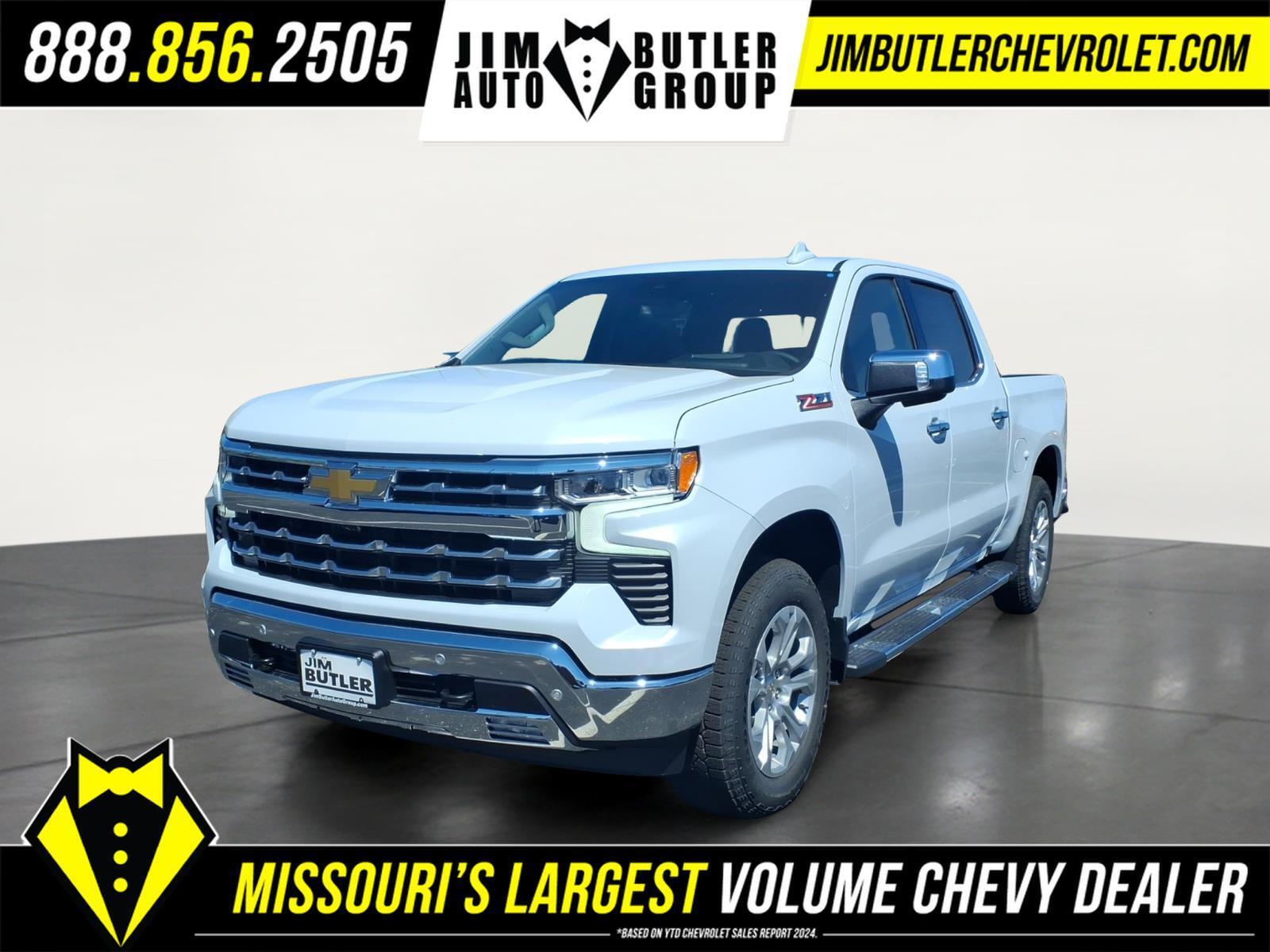Price does not include tax, title, license, or administration fees. Price does include: $4250 - Customer Cash. Exp. 04/30/2026 $500 - Bonus Cash. Exp. 04/30/2026 2026 Chevrolet Silverado 1500 LTZ LTZ Polar White Tricoat 4WD 10-Speed Automatic EcoTec3 5.3L V8 Priced below KBB Fair Purchase Price! Please call today (888) 475-3191. We are proud to be a GM Mark of Excellence Dealership. Come see why we are the #1 Chevrolet dealership in the Midwest. On top of that we have also been awarded Dealer of the year the last 11 years. Proudly serving: St. Louis, South County, Webster Groves, Creve Coeur, Kirkwood, Maryland Heights, Sullivan, Rolla, Columbia, Fenton, Chesterfield, St. Charles, Kansas City, Springfield, Jefferson City, and all of great Missouri and Illinois. While we make every attempt to ensure pricing accuracy. Dealer not responsible for computer or human error, dealer reserves the right to change prices due to human or computer error. In order to put a 24 hour hold deposit on vehicles, Financing must be secured thru Jim Butler Chevrolet Business Office and Cash Deals must be Electronically Transferred within Six Hours. High Capacity Suspension Package, LTZ Convenience Package (2 USB Data Ports, Floor Mounted Center Console, Front Bucket Seats, Power Tilt and Telescoping Steering Column, Premium Bose 7-Speaker Sound System, Ventilated Driver and Front Passenger Seats, and Wireless Charging), LTZ Convenience Package II (2nd Row Heated Outboard Seats, Adaptive Cruise Control, Power Sliding Rear Window with Rear Defogger, and Universal Home Remote), LTZ Plus Package, LTZ Premium Package (Power Sunroof), Preferred Equipment Group 1LZ (10-Way Power Driver Seat with Lumbar, 10-Way Power Passenger Seat Adjuster with Lumbar, 12.3Multicolor Reconfigurable Digital Display, 120-Volt Bed Mounted Power Outlet, 120-Volt Interior Power Outlet, Auto-Dimming Inside Rear-View Mirror, Auto-Locking Rear Differential, Bluetooth� For Phone, Chrome Mirror Caps, Color-Keyed Carpeting Floor Covering, Deep-Tinted Glass, Driver Memory, Dual Rear USB Ports (charge Only), Electric Rear-Window Defogger, Electronic Cruise Control, Front Frame-Mounted Black Recovery Hooks, Front LED Fog Lamps, Front Rain-Sensing Wipers, Front Rubberized Vinyl Floor Mats, Heated Driver and Front Outboard Passenger Seats, Heated Steering Wheel, Hitch Guidance with Hitch View, in-Vehicle Trailering System App, Integrated Trailer Brake Controller, Keyless Open and Start, LED Cargo Area Lighting, OnS