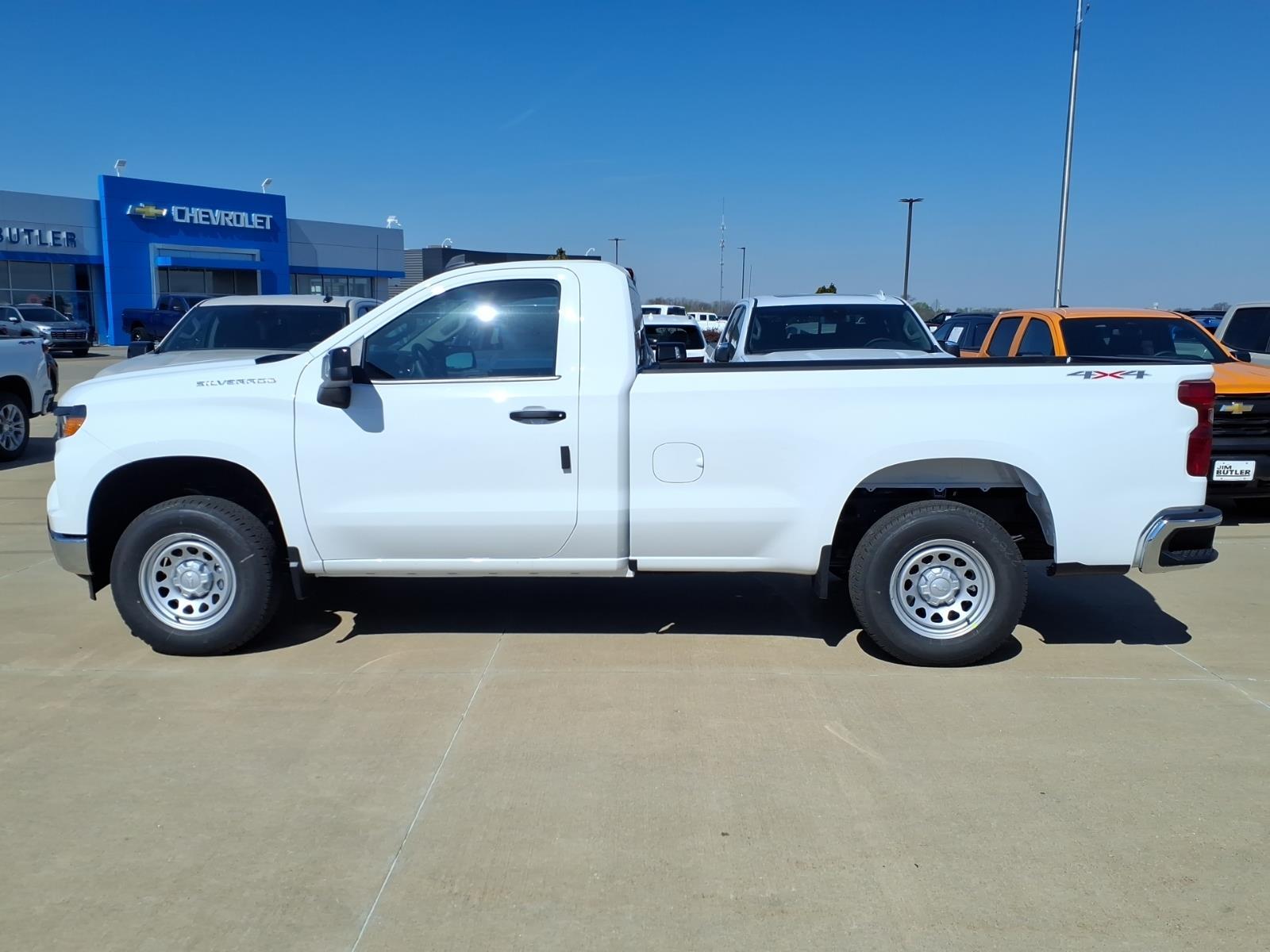 2026 Chevrolet Silverado 1500 WT WT Summit White 4WD 10-Speed Automatic EcoTec3 5.3L V8 Recent Arrival! Please call today (888) 475-3191. We are proud to be a GM Mark of Excellence Dealership. Come see why we are the #1 Chevrolet dealership in the Midwest. On top of that we have also been awarded Dealer of the year the last 11 years. Proudly serving: St. Louis, South County, Webster Groves, Creve Coeur, Kirkwood, Maryland Heights, Sullivan, Rolla, Columbia, Fenton, Chesterfield, St. Charles, Kansas City, Springfield, Jefferson City, and all of great Missouri and Illinois. While we make every attempt to ensure pricing accuracy. Dealer not responsible for computer or human error, dealer reserves the right to change prices due to human or computer error. In order to put a 24 hour hold deposit on vehicles, Financing must be secured thru Jim Butler Chevrolet Business Office and Cash Deals must be Electronically Transferred within Six Hours. Preferred Equipment Group 1WT (3.5Monochromatic Display Driver Info Center, 4-Way Manual Driver Seat Adjuster, 40/20/40 Front Split Bench Seat, Black (Semi-Gloss) Front Bumper, Black (Semi-Gloss) Rear Bumper, Bluetooth� For Phone, Electronic Cruise Control, Front Frame-Mounted Black Recovery Hooks, HD Rear Vision Camera, Heated Power-Adjustable Outside Mirrors, Inside Rearview Mirror with Tilt, Locking Tailgate, Manual Tailgate Function with No EZ Lift, Manual Tilt Wheel Steering Column, OnStar Services Capable, Power Front Windows with Driver Express Up/Down, Power Front Windows with Passenger Express Down, Remote Keyless Entry, Rubberized-Vinyl Floor Covering, SiriusXM Delete, Solar Absorbing Tinted Glass, Standard Tailgate, Teen Driver, Tire Pressure Monitoring System, Vinyl Seat Trim, Wheels: 17x 8Ultra Silver Painted Steel, and Wi-Fi Hot Spot Capable), Snow Plow Prep Package (220 Amp Alternator and Heavy-Duty Air Filter), Standard Suspension Package, Trailering Package (Hitch Guidance), WT Convenience Package (Deep-Tinted Glass and Electric Rear-Window Defogger), WT Safety Package (Front Chrome Bumper, High Gloss Black Mirror Caps, Lane Change Alert with Side Blind Zone Alert, Perimeter Lighting, Rear Chrome Bumper, Rear Cross Traffic Braking, Rear Pedestrian Alert, and Ultrasonic Front and Rear Park Assist), WT Value Package, 120-Volt Bed Mounted Power Outlet, 120-Volt Interior Power Outlet, 2 Speakers, 2-Speaker Audio System, 4-Wheel Disc Brakes, ABS brakes, Air Conditioning, AM/FM radio, Apple CarPlay/Android