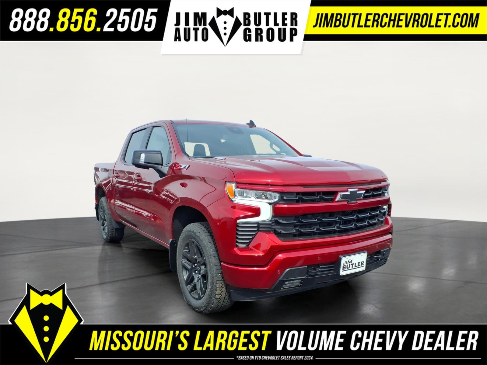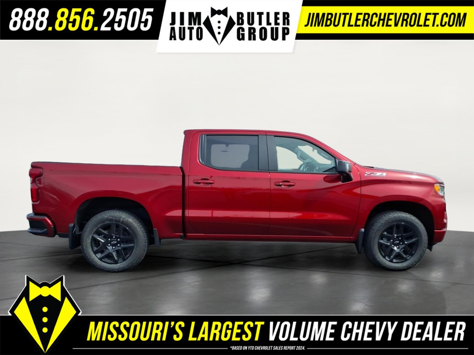 Price does not include tax, title, license, or administration fees. Price does include: $1250 - Customer Cash. Exp. 04/30/2026 $750 - Bonus Cash. Exp. 04/30/2026 2026 Chevrolet Silverado 1500 RST RST Radiant Red Tintcoat 4WD 10-Speed Automatic 3.0L I6 Please call today (888) 475-3191. We are proud to be a GM Mark of Excellence Dealership. Come see why we are the #1 Chevrolet dealership in the Midwest. On top of that we have also been awarded Dealer of the year the last 11 years. Proudly serving: St. Louis, South County, Webster Groves, Creve Coeur, Kirkwood, Maryland Heights, Sullivan, Rolla, Columbia, Fenton, Chesterfield, St. Charles, Kansas City, Springfield, Jefferson City, and all of great Missouri and Illinois. While we make every attempt to ensure pricing accuracy. Dealer not responsible for computer or human error, dealer reserves the right to change prices due to human or computer error. In order to put a 24 hour hold deposit on vehicles, Financing must be secured thru Jim Butler Chevrolet Business Office and Cash Deals must be Electronically Transferred within Six Hours. All Star Edition Plus (Wheels: 20x 9Painted Aluminum), Convenience Package (10-Way Power Driver Seat with Lumbar, 120-Volt Bed Mounted Power Outlet, 120-Volt Interior Power Outlet, Dual Rear USB Ports (charge Only), Dual-Zone Automatic Climate Control, Electric Rear-Window Defogger, Heated Driver and Front Outboard Passenger Seats, Heated Steering Wheel, Keyless Open and Start, LED Cargo Area Lighting, Manual Tilt/Telescoping Steering Column, Remote Vehicle Starter System, Theft Deterrent System (unauthorized Entry), and Wrapped Steering Wheel), Convenience Package II (Hitch Guidance with Hitch View, in-Vehicle Trailering System App, Power Sliding Rear Window with Rear Defogger, Premium Bose 7-Speaker Sound System, and Universal Home Remote), High Capacity Suspension Package, Leather Package (Leather-Appointed Front Seat Trim), Preferred Equipment Group 1SP (12.3Multicolor Reconfigurable Digital Display, 40/20/40 Front Split-Bench Seat, 6-Speaker Audio System, All-Star Edition, Auto-Locking Rear Differential, Bluetooth� For Phone, Cloth Seat Trim, Color-Keyed Carpeting Floor Covering, Deep-Tinted Glass, Electronic Cruise Control, EZ Lift Power Lock and Release Tailgate, Front Frame-Mounted Black Recovery Hooks, Front LED Fog Lamps, Front Rubberized Vinyl Floor Mats, HD Rear Vision Camera, Heated Power-Adjustable Outside Mirrors, High Gloss Black Mirror Caps, Inside Rearv