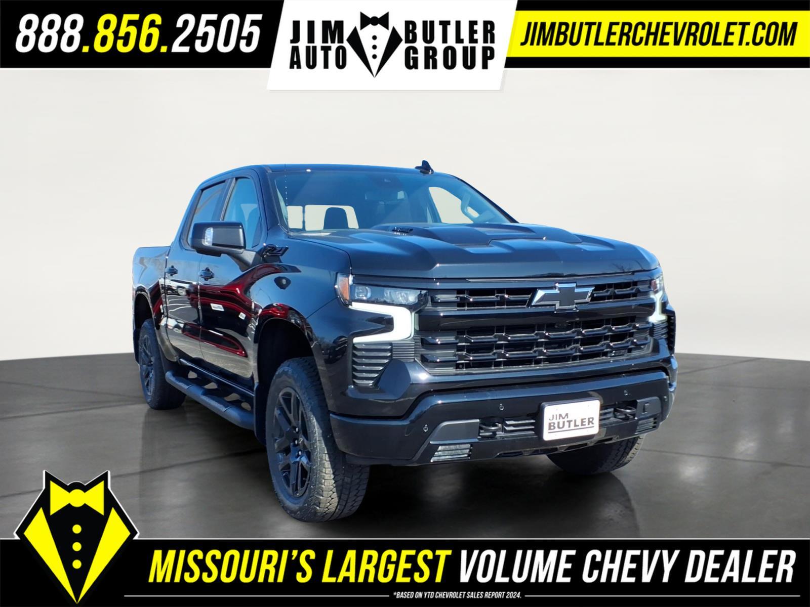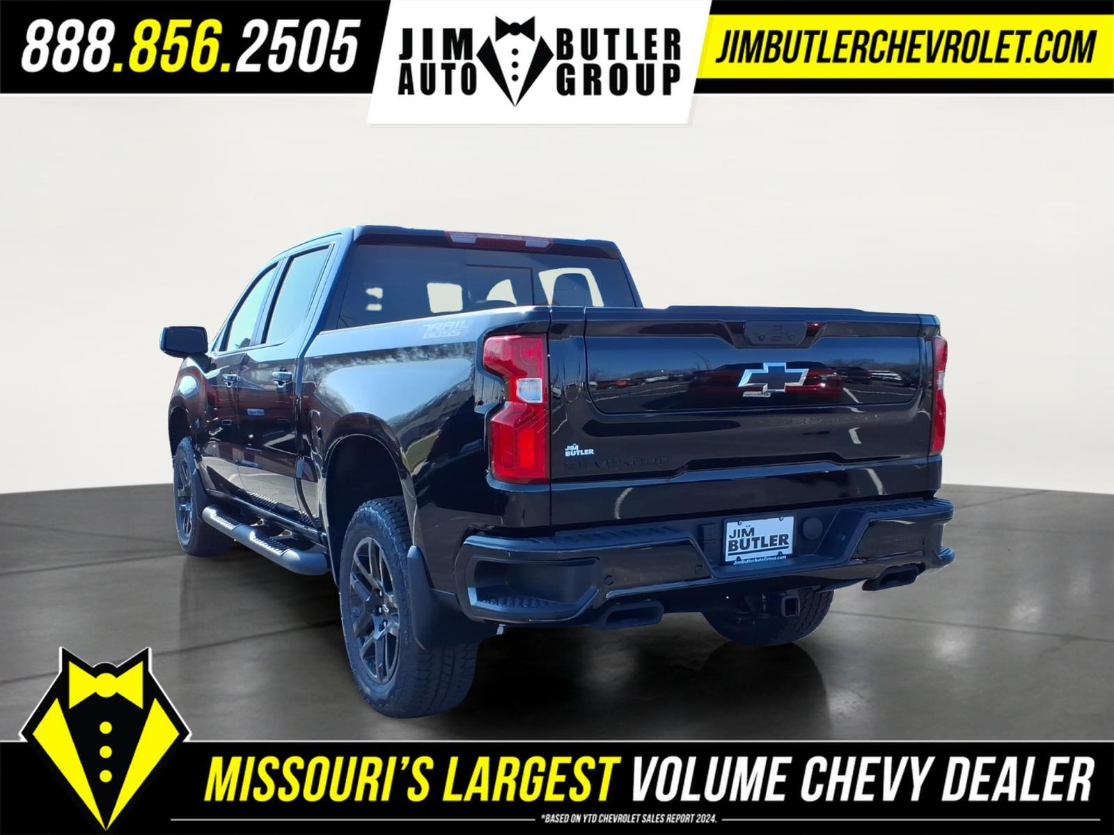 Price does not include tax, title, license, or administration fees. Price does include: $1250 - Customer Cash. Exp. 04/30/2026 $750 - Bonus Cash. Exp. 04/30/2026 2026 Chevrolet Silverado 1500 LT Trail Boss LT Trail Boss Black 4WD 10-Speed Automatic 3.0L I6 22/26 City/Highway MPG Please call today (888) 475-3191. We are proud to be a GM Mark of Excellence Dealership. Come see why we are the #1 Chevrolet dealership in the Midwest. On top of that we have also been awarded Dealer of the year the last 11 years. Proudly serving: St. Louis, South County, Webster Groves, Creve Coeur, Kirkwood, Maryland Heights, Sullivan, Rolla, Columbia, Fenton, Chesterfield, St. Charles, Kansas City, Springfield, Jefferson City, and all of great Missouri and Illinois. While we make every attempt to ensure pricing accuracy. Dealer not responsible for computer or human error, dealer reserves the right to change prices due to human or computer error. In order to put a 24 hour hold deposit on vehicles, Financing must be secured thru Jim Butler Chevrolet Business Office and Cash Deals must be Electronically Transferred within Six Hours. Convenience Package (10-Way Power Driver Seat with Lumbar, 120-Volt Bed Mounted Power Outlet, 120-Volt Interior Power Outlet, Dual Rear USB Ports (charge Only), Dual-Zone Automatic Climate Control, Electric Rear-Window Defogger, Heated Driver and Front Outboard Passenger Seats, Heated Steering Wheel, Keyless Open and Start, LED Cargo Area Lighting, Manual Tilt/Telescoping Steering Column, Remote Vehicle Starter System, Theft Deterrent System (unauthorized Entry), and Wrapped Steering Wheel), Convenience Package II (Hitch Guidance with Hitch View, in-Vehicle Trailering System App, Power Sliding Rear Window with Rear Defogger, Premium Bose 7-Speaker Sound System, and Universal Home Remote), Leather Package (Leather-Appointed Front Seat Trim), LT Trail Boss Premium Package (Power Tailgate), Midnight Edition (Black Dual Exhaust Tips, Dark Headlamp Bezel, and Front Frame-Mounted Black Recovery Hooks), Preferred Equipment Group 2LT (12.3Multicolor Reconfigurable Digital Display, 40/20/40 Front Split-Bench Seat, 6-Speaker Audio System, All-Weather Floor Liner, Auto-Locking Rear Differential, Bluetooth� For Phone, Cloth Seat Trim, Color-Keyed Carpeting Floor Covering, Deep-Tinted Glass, Electronic Cruise Control, EZ Lift Power Lock and Release Tailgate, Front LED Fog Lamps, HD Rear Vision Camera, Heated Power-Adjustable Outside Mirrors, High Gloss Black Mi