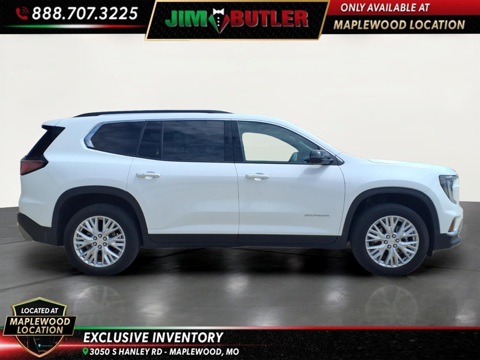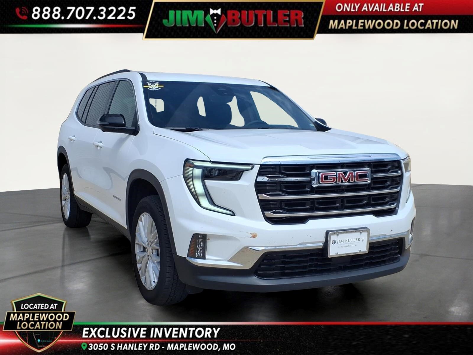 2026 GMC Acadia Elevation Summit White 8-Speed Automatic AWD 2.5L DOHC CARFAX One-Owner. Clean CARFAX. Please call today (888) 475-3191. We are proud to be a GM Mark of Excellence Dealership. Come see why we are the #1 Chevrolet dealership in the Midwest. On top of that we have also been awarded Dealer of the year the last 11 years. Proudly serving: St. Louis, South County, Webster Groves, Creve Coeur, Kirkwood, Maryland Heights, Sullivan, Rolla, Columbia, Fenton, Chesterfield, St. Charles, Kansas City, Springfield, Jefferson City, and all of great Missouri and Illinois. While we make every attempt to ensure pricing accuracy. Dealer not responsible for computer or human error, dealer reserves the right to change prices due to human or computer error. In order to put a 24 hour hold deposit on vehicles, Financing must be secured thru Jim Butler Chevrolet Business Office and Cash Deals must be Electronically Transferred within Six Hours. Elevation Premium Package (3-Channel Programmable Universal Home Remote, 6-Way Power Front Passenger Seat Adjuster, 7-Passenger Seating (2-2-3 Seating Configuration), CoreTec Seat Trim, and Front Passenger Power Lumbar Seat Adjuster), Preferred Equipment Group 4SD, 12 Speakers, 18x 7.5Aluminum Wheels, 3.49 Final Drive Axle Ratio, 3rd row seats: split-bench, 4-Way Manual Front Passenger Seat Adjuster, 4-Wheel Disc Brakes, 8-Passenger Seating (2-3-3 Seating Configuration), 8-Way Power Driver Seat Adjuster, ABS brakes, Air Conditioning, Alloy wheels, AM/FM radio: SiriusXM with 360L, Apple CarPlay/Android Auto, Auto High-beam Headlights, Automatic temperature control, Bodyside moldings, Bose Premium 12-Speaker System w/Sub-Woofer, Brake assist, Bumpers: body-color, Cloth Seat Trim, Compass, Delay-off headlights, Driver 2-Way Power Lumbar Seat Adjuster, Driver door bin, Driver vanity mirror, Dual front impact airbags, Dual front side impact airbags, Electronic Stability Control, Emergency communication system: OnStar Services capable, Exterior Parking Camera Rear, Four wheel independent suspension, Front anti-roll bar, Front Bucket Seats, Front Center Armrest, Front dual zone A/C, Front fog lights, Front License Plate Bracket, Front reading lights, Fully automatic headlights, Heated door mirrors, Heated Driver & Front Passenger Seats, Heated front seats, Heated steering wheel, Illuminated entry, Leather steering wheel, Low tire pressure warning, Navigation System, Occupant sensing airbag, Outside temperature display, Overhead