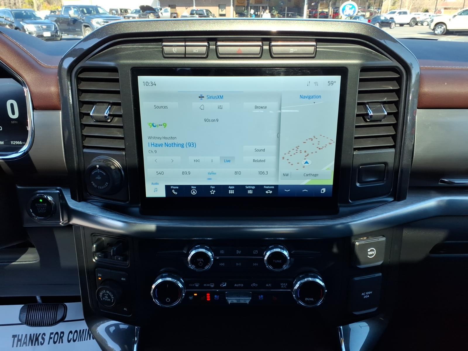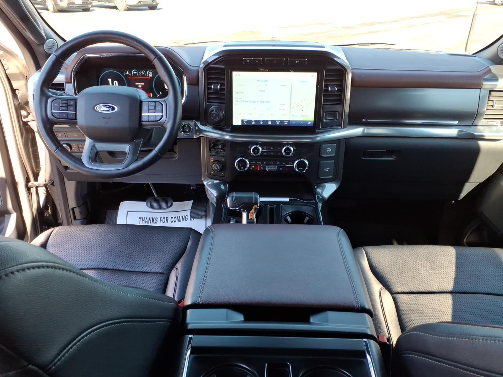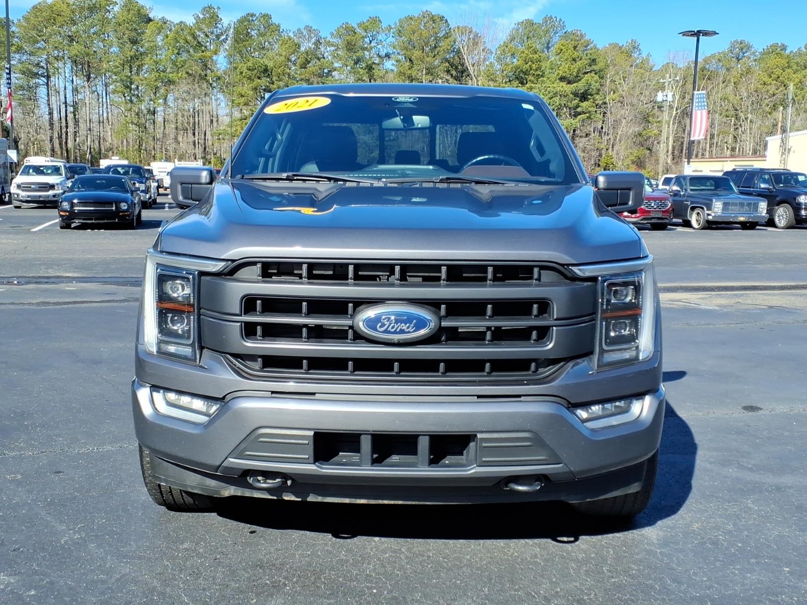 CARFAX One-Owner. Carbonized Gray Metallic 2021 Ford F-150 Lariat 4WD 10-Speed Automatic 3.5L PowerBoost Full-Hybrid V6 3.5L PowerBoost Full-Hybrid V6, 4WD, 2nd Row Heated Seats, 360 Degree Camera, 4-Wheel Disc Brakes, 6 Chrome Running Board, 7 Speakers, ABS brakes, Accent-Color Angular Step Bars, Adjustable pedals, Air Conditioning, Alloy wheels, AM/FM radio: SiriusXM with 360L, Auto High-beam Headlights, Auto Start-Stop Removal, Auto-dimming door mirrors, Auto-dimming Rear-View mirror, Automatic temperature control, Body-Color Front & Rear Bumpers, Box Side Decals, Brake assist, Bumpers: chrome, Chrome 2-Bar Grille w/4 Minor Bars, Chrome Door & Tailgate Handles w/Body-Color Bezel, Chrome Single-Tip Exhaust, Chrome Skull Caps on Exterior Mirrors, Class IV Trailer Hitch Receiver, Compass, Connected Built-In Navigation, Dark 2-Bar & 1 Minor Bar Style Grille, Delay-off headlights, Driver door bin, Driver vanity mirror, Dual front impact airbags, Dual front side impact airbags, Electronic Locking w/3.73 Axle Ratio, Electronic Stability Control, Emergency communication system: SYNC 4 911 Assist, Equipment Group 502A High, Evasive Steering Assist, Exterior Parking Camera Rear, Ford Co-Pilot360 Assist 2.0, Front anti-roll bar, Front Center Armrest w/Storage, Front dual zone A/C, Front fog lights, Front reading lights, Front wheel independent suspension, Fully automatic headlights, Heated door mirrors, Heated front seats, Heated Steering Wheel, Illuminated entry, Integrated Trailer Brake Controller, Intelligent Adaptive Cruise Control w/Stop & Go, Interior Work Surface, Intersection Assist, Lariat Chrome Appearance Package, Lariat Sport Appearance Package, Leather-Trimmed 40/20/40 Front Seat, Leather-Trimmed Bucket Seats, LED Projector w/Dynamic Bending Headlamps, LED Sideview Mirror Spotlights, Low tire pressure warning, Memory seat, Navigation system: Connected Navigation (90-Day Trial), Occupant sensing airbag, Onboard 400W Outlet, Outside temperature display, Overhead airbag, Overhead console, Panic alarm, Passenger door bin, Passenger vanity mirror, Pedal memory, Power door mirrors, Power driver seat, Power Glass Sideview Mirr w/Chrome Skull Caps, Power passenger seat, Power steering, Power Tilt/Telescoping Steering Column w/Memory, Power windows, Pro Power Onboard - 7.2KW, Pro Trailer Backup Assist, Radio data system, Radio: AM/FM SiriusXM w/360L, Radio: B&O Sound System by Bang & Olufsen, Radio: B&O Unleashed Sound System by Bang & Olufsen, Rain-Sensi
