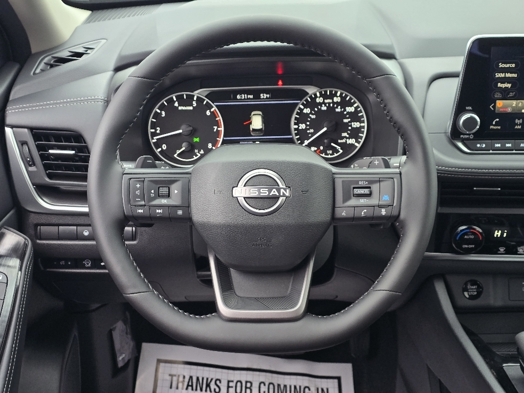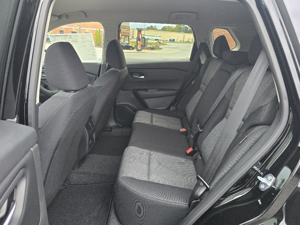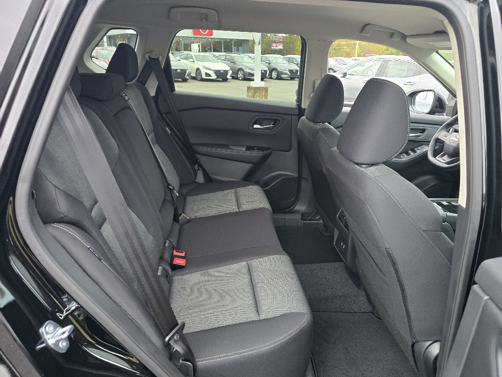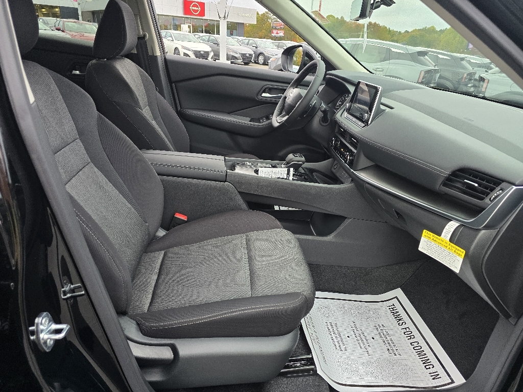 Super Black 2026 Nissan Rogue SV FWD CVT with Xtronic 1.5L DOHC INFORMATION ABOUT THIS VEHICLE AND ITS FEATURES:. 4-Wheel Disc Brakes, 6 Speakers, ABS brakes, Air Conditioning, Alloy wheels, AM/FM radio: Sirius, Apple CarPlay/Android Auto, Auto High-beam Headlights, Automatic temperature control, Black Splash Guards (Set of 4) (B92), Brake assist, Bumpers: body-color, Chrome Rear Bumper Protector, Cloth Seat Trim w/Patterned Inserts, Delay-off headlights, Driver door bin, Driver vanity mirror, Dual front impact airbags, Dual front side impact airbags, Electronic Stability Control, Emergency communication system: NissanConnect Services, First Aid Kit, Floor Mats w/1-Piece Cargo Area Protector, Four wheel independent suspension, Frameless Rearview Mirror w/Universal Remote, Front anti-roll bar, Front Bucket Seats, Front Center Armrest, Front dual zone A/C, Front reading lights, Fully automatic headlights, Heated door mirrors, Illuminated entry, Knee airbag, Low tire pressure warning, Occupant sensing airbag, Outside temperature display, Overhead airbag, Overhead console, Panic alarm, Passenger door bin, Passenger vanity mirror, Power door mirrors, Power driver seat, Power Liftgate, Power steering, Power windows, Radio data system, Radio: AM/FM NissanConnect, Rear anti-roll bar, Rear seat center armrest, Rear side impact airbag, Rear window defroster, Rear window wiper, Remote keyless entry, Speed control, Speed-sensing steering, Speed-Sensitive Wipers, Split folding rear seat, Spoiler, Steering wheel mounted audio controls, Tachometer, Telescoping steering wheel, Tilt steering wheel, Traction control, Trip computer, Variably intermittent wipers, and Wheels: 18Dark Painted Machine Finished Alloy. 29/36 City/Highway MPG Price includes: $2500 - Nissan Customer Cash. Exp. 01/05/2026 $500 - Nissan MY26 Rogue and Murano Customer Cash. Exp. 01/05/2026