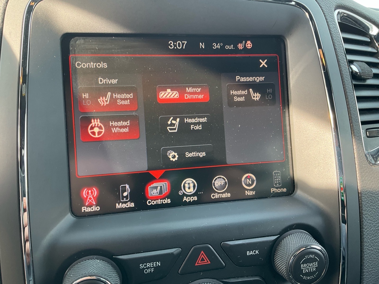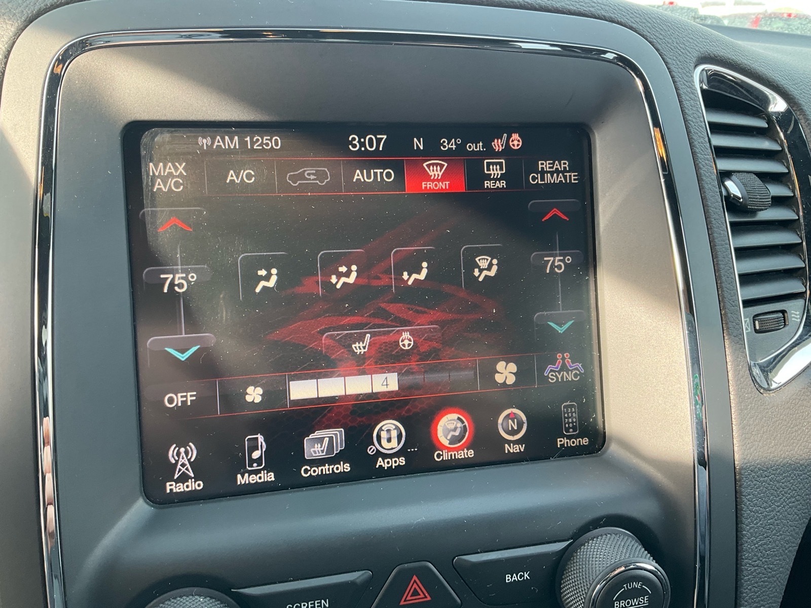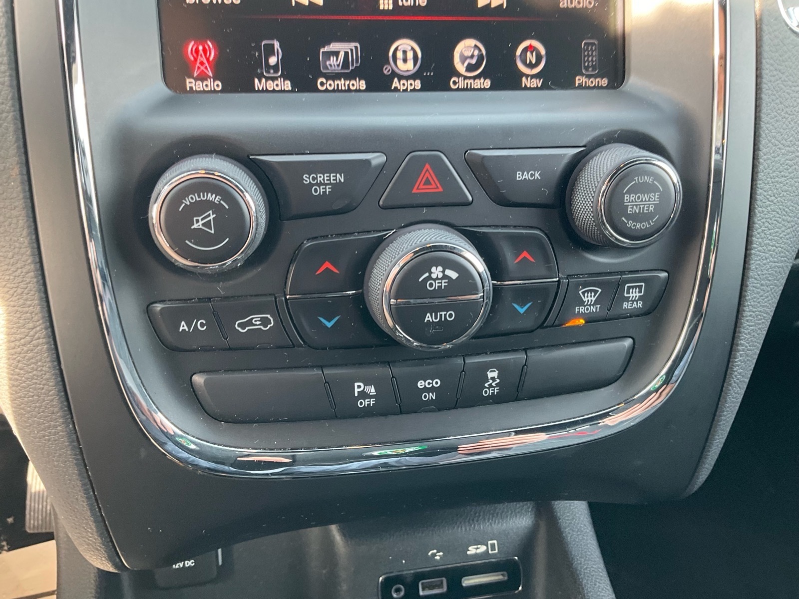 Other luxurious touches brought to Durango for the first time in the SRT model include new Light Black Chrome center stack, HVAC, full console and door handle bezels along with two choices of decorative bezels. Standard finish is Matte Reverse Chain, and for the first time on Durango a true carbon-fiber instrument panel and door bezels will be offered (late availability). Premium velour bound floor mats with embroidered SRT logo are standard. Adding to the impact of the hand-wrapped instrument panel, the headliner and A pillars are available in Dynamica suede.