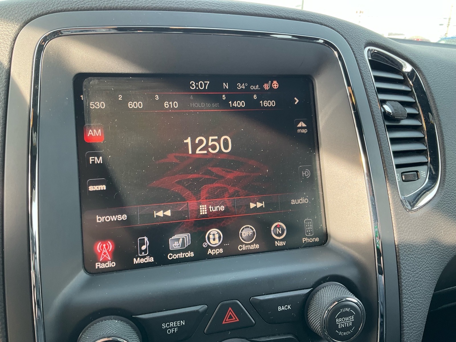 A newly designed 7-inch, thin-film transistor (TFT) customizable digital instrument gauge cluster with 180-mph speedometer allows drivers to select from a multitude of layouts and information. The class-exclusive Uconnect 8.4-inch touchscreen media center houses the new SRT Performance Pages along with navigation, Apple CarPlay, Android Auto, HD radio, downloadable apps and 5-year trial of SiriusXM Travel Link and Traffic. The standard BeatsAudio premium sound system features nine speakers, subwoofer and 506-watt amplifier.