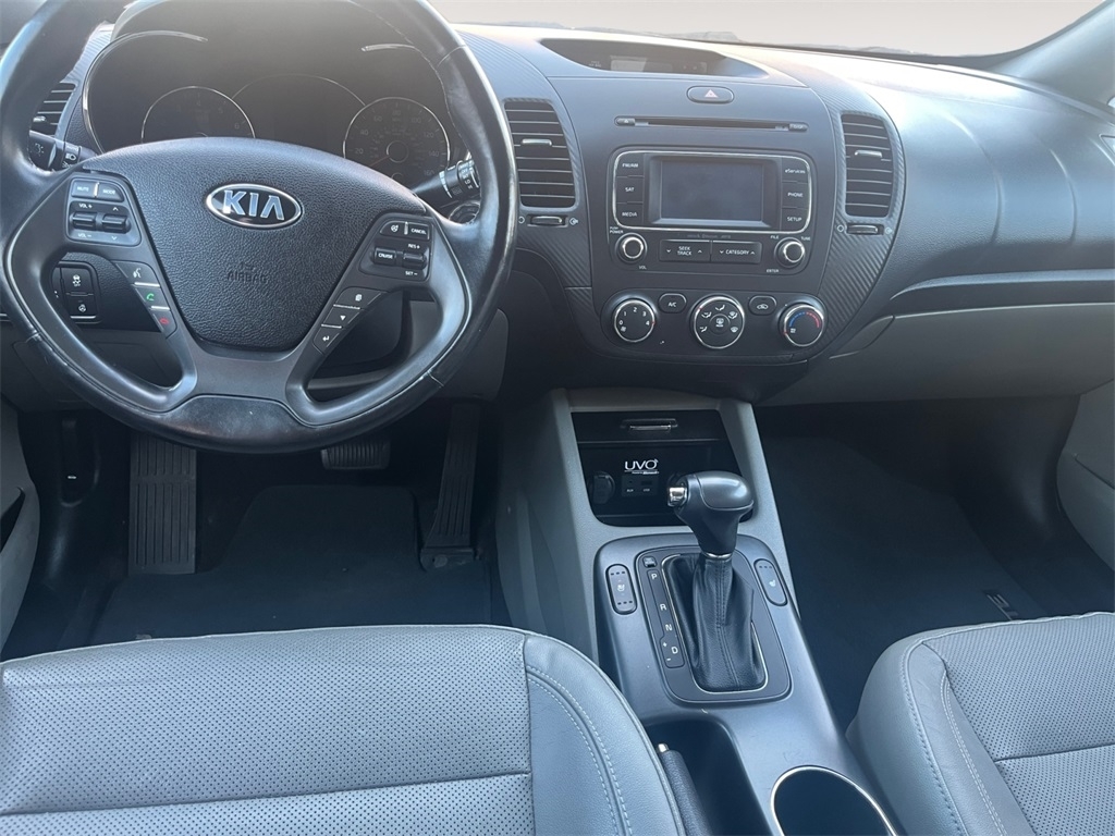 Abyss Blue 2015 Kia Forte EX FWD 6-Speed Automatic 2.0L I4 DOHC Dual CVVT Odometer is 18388 miles below market average! 25/36 City/Highway MPG Awards: * 2015 KBB.com 10 Best UberX Candidates * 2015 KBB.com 10 Tech-Savviest Cars Under $20,000 Reviews: * The Forte offers a little something for everyone. There's a practical 4-door sedan, an even more practical hatchback, and a sporty 2-door. It also offers plenty of high tech features, and a very generous warranty. Source: KBB.com * Spacious interior for both sedan and coupe; many features available; strong engines on EX and SX trims; easy-to-use controls; lengthy warranty coverage. Source: Edmunds * Coming back for 2015 is the Kia Forte5. It is peppy, economical, and surprisingly loaded with tech features. Its larger and roomier than the previous generation of Fortes, and boasts a new, sportier exterior. As with all Kia models, the 2015 Forte5 packs a lot of bang for your buck. The quieter engine and refined suspension mean a pleasant ride that feels like a larger, more expensive car. You can choose either the six-speed manual transmission or the six-speed automatic overdrive w/ Sportmatic. Choose from a 2.0L engine that can produce up to 173hp or a turbocharged 1.6L that puts out 201hp. Depending on your choice of trim, youll enjoy fuel economy ranging from an EPA estimated 21 MPG in the city, to 33 MPG on the highway. The trunk is generously-sized, larger than most compact vehicles, meaning you can fit all your gear, from groceries to golf clubs. Standard equipment includes steering wheel mounted audio controls, bluetooth, electronic stability control, and heated door mirrors. For added style, consider the available Premium Package, with items such as leather seat trim, power sunroof, push button start, ventilated drivers seat, heated front/ rear seats and heated steering wheel. With the available UVO eServices Infotainment System you can control a number of features when paired with a compatible device. Also available is voice-command navigation. It offers a vivid color, touch screen and relays real-time highway conditions from SiriusXM Traffic (real time updates require paid SiruiusXM subscription). Source: The Manufacturer Summary