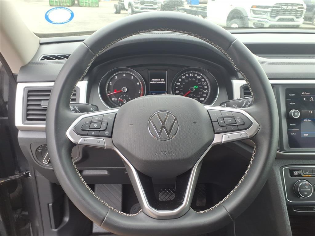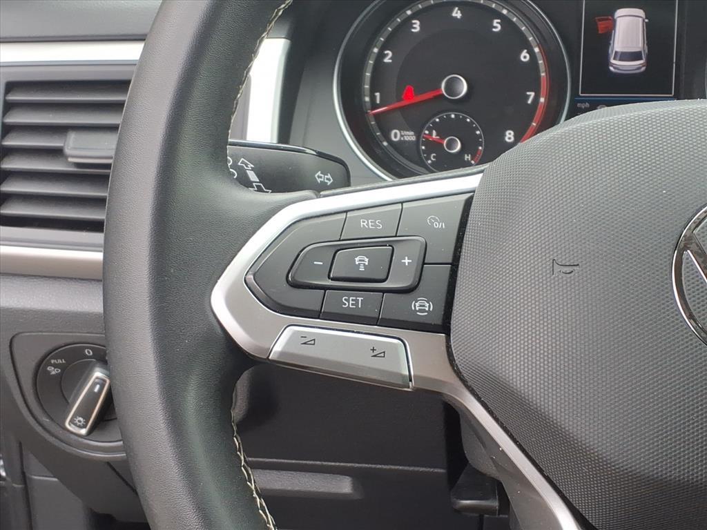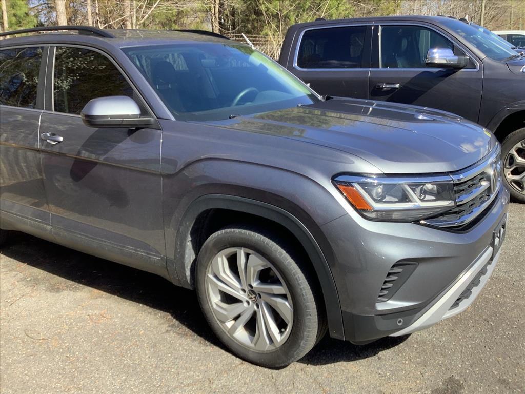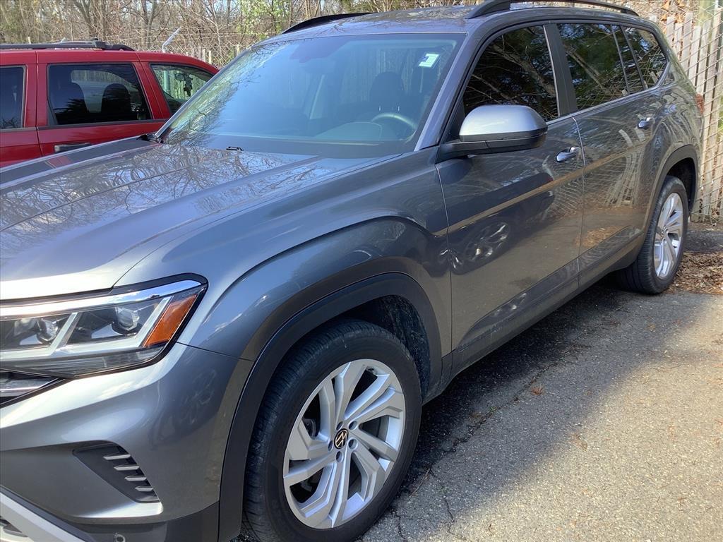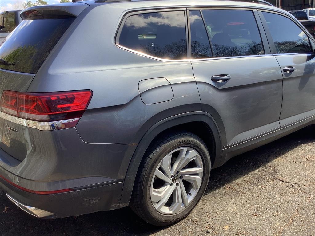 This Platinum Gray Metallic 2021 Volkswagen Atlas 3.6L V6 SE w/Technology AWD is a bold and incredibly spacious 3-row SUV designed to handle family life with style and precision! Powered by the robust 3.6L VR6 engine and a versatile 8-speed automatic transmission with Tiptronic, this Atlas features Volkswagen's advanced 4MOTION All-Wheel Drive system. Whether you are navigating slick winter roads or heading out for a weekend mountain getaway, this powertrain provides the confidence and towing capability you need in a modern family hauler. Superior SE w/Technology Cabin & Comfort: Inside, the cabin is finished in a sophisticated Titan Black interior featuring Perforated V-Tex Leatherette Seating Surfaces. This model is designed for maximum passenger comfort, offering Heated Comfort Front Bucket Seats and a highly functional 3rd-row split-bench seat that actually fits adults comfortably. The SE w/Technology package adds premium convenience features such as Tri-Zone Automatic Climate Control with dedicated Rear Air Conditioning, a Power Driver Seat, and Remote Keyless Entry. The spacious layout is further enhanced by a Leather-Wrapped Steering Wheel, Auto-dimming Rear-View mirror, and ample storage solutions, including 2nd-row Dual Captains Chairs for easier access to the rear. Advanced Connectivity & Entertainment: Technology is the centerpiece of this Atlas. It features the Composition Media system with an 8-inch Touchscreen, providing seamless integration for your smartphone via Apple CarPlay and Android Auto. Enjoy your favorite media through the 6-speaker audio system with SiriusXM with 360L capability. The vehicle is also equipped with VW Car-Net services, offering remote access and connectivity features that keep you in touch with your vehicle at all times. With multiple USB ports and a wireless charging pad, every passenger can stay powered up on the go. Comprehensive Safety & Driver Assistance: Volkswagen prioritizes your safety with a suite of advanced driver-assist features. This Atlas includes Active Cruise Control (ACC), Forward Collision Warning with Autonomous Emergency Braking (Front Assist), and an Active Blind Spot Monitor. Navigating tight parking spots is simple with the Exterior Parking Camera Rear and Parking Assist sensors. Additional safety highlights include Electronic Stability Control, Traction Control, Brake Assist, and a comprehensive Overhead Airbag system to protect all three rows of passengers. Exterior Styling & Utility: The P