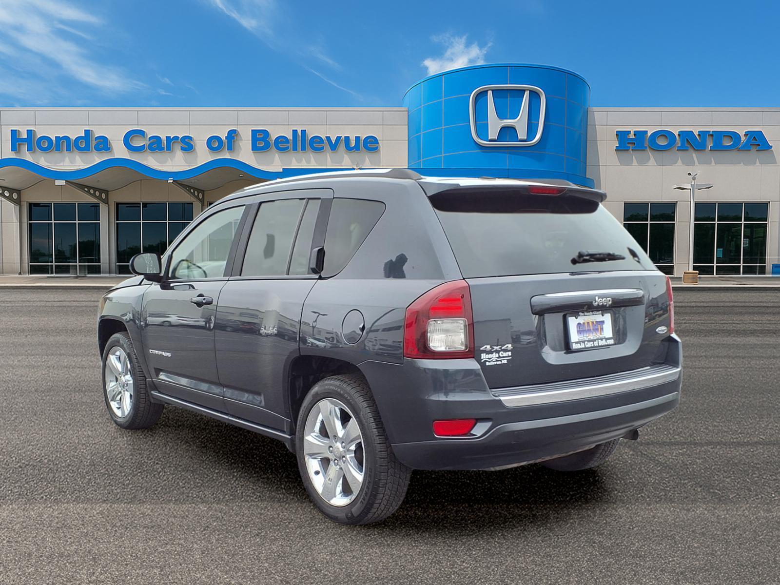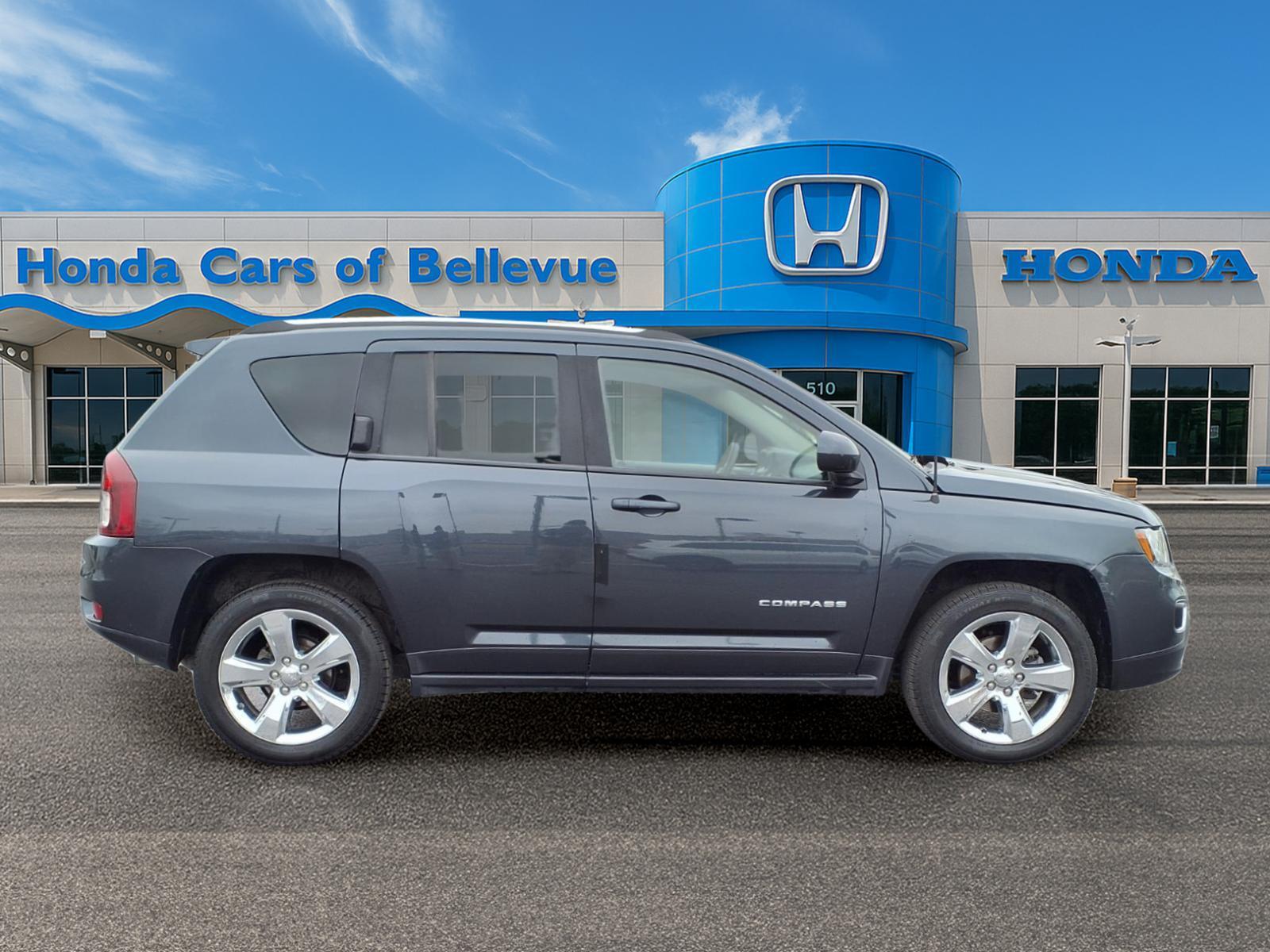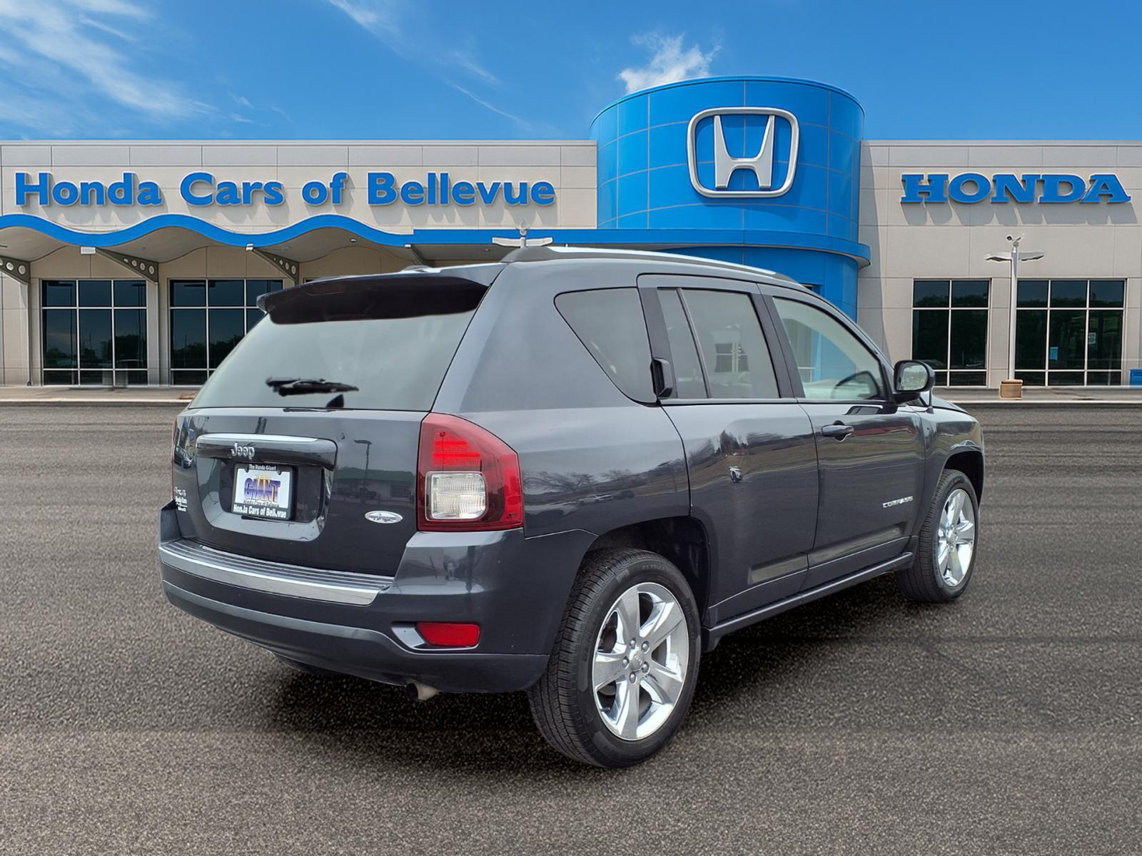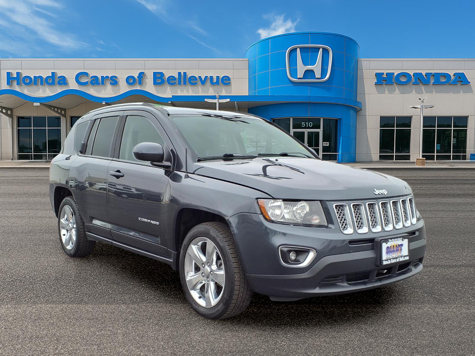 Contact Honda Cars Of Bellevue today for information on dozens of vehicles like this 2015 Jeep Compass High Altitude Edition. The Jeep Compass High Altitude Edition offers a fair amount of utility thanks to its advanced features and unique styling. Its also quite sporty, and injects an ample amount of handling chutzpah into the ridin-high body of a family-friendly SUV. Taking the road less traveled has never been more fun than with this 4WD. With improved performance, mileage and acceleration, this 2015 4WD Jeep Compass High Altitude Edition is king of the off-road. One of the best things about this Jeep Compass is that it has low, low mileage. Its ready for you to truly break it in. Pre-owned doesnt have to mean used. The clean interior of this Jeep Compass makes it one of the nicest youll find. A perfect find to complement any rare automotive collection. This beautiful lass will turn heads everywhere she goes. More information about the 2015 Jeep Compass: Along with the closely related Jeep Patriot, the Jeep Compass is one of the lowest-priced off-road-capable utility vehicles on the market when you get it with the optional Freedom Drive II Off-Road Package, yet it packs that in a vehicle that rides and handles for the most part like a car. Ease of parking and maneuverability are strengths for this model, and its also reasonably fuel-efficient at an EPA-estimated 30 mpg. The Compass can optioned to tow up to 2,000 pounds--enough for a couple of jet-skis. Interesting features of this model are some innovative features, maneuverability and parking ease, Versatile layout for people and gear, and serious off-road ability in an affordable, compact package.
