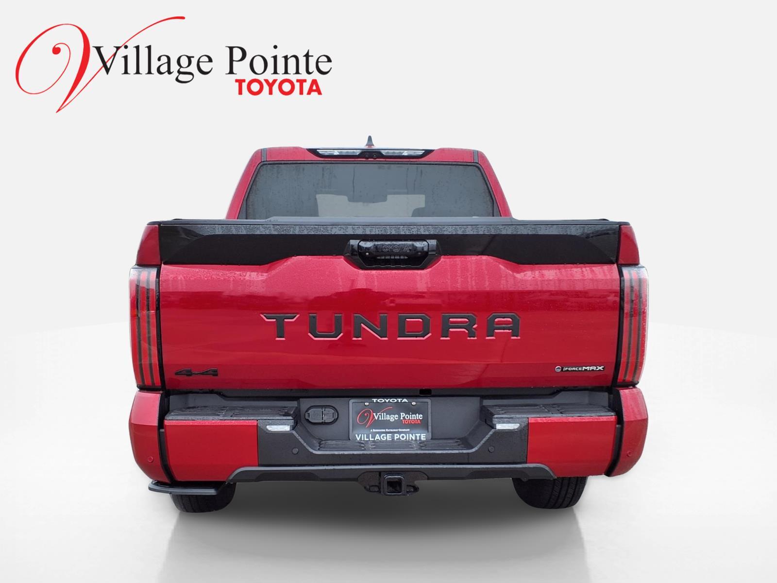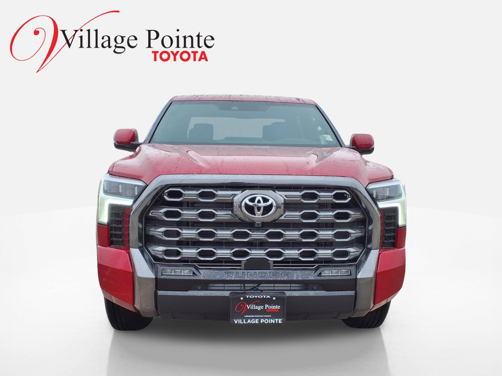 Conquer the Road with the 2026 Toyota Tundra Hybrid Platinum: Power, Efficiency, and Unmatched Comfort in a Bold Supersonic Red Package Discover the perfect blend of power and efficiency with the 2026 Toyota Tundra Hybrid Platinum, a truck that redefines the driving experience. At its heart, a robust 3.4L V6 engine paired with a gas/electric hybrid system ensures you tackle any terrain with confidence. The Tundra's advanced Four Wheel Drive and Turbocharged powertrain deliver exceptional performance, while the 10-speed automatic transmission offers seamless gear shifts for a smooth ride. Safety is paramount, with features like Blind Spot Monitor, Lane Keeping Assist, and Front Collision Mitigation providing peace of mind on every journey. The Tundra's interior is a sanctuary of luxury and technology, featuring leather seats with heating and cooling options, a panoramic roof for breathtaking views, and a premium sound system that transforms every drive into an experience. Stay connected with the latest tech, including a Navigation System, WiFi Hotspot, and Smart Device Integration. The Tundra's adaptive cruise control and rain-sensing wipers add convenience to your travels, while the tow hitch ensures you're ready for any adventure. Embrace the future of driving with the 2026 Toyota Tundra Hybrid Platinum. Be sure to call or visit Village Pointe Toyota to discover more. Your new favorite vehicle awaits - dont let someone else drive it home!‌