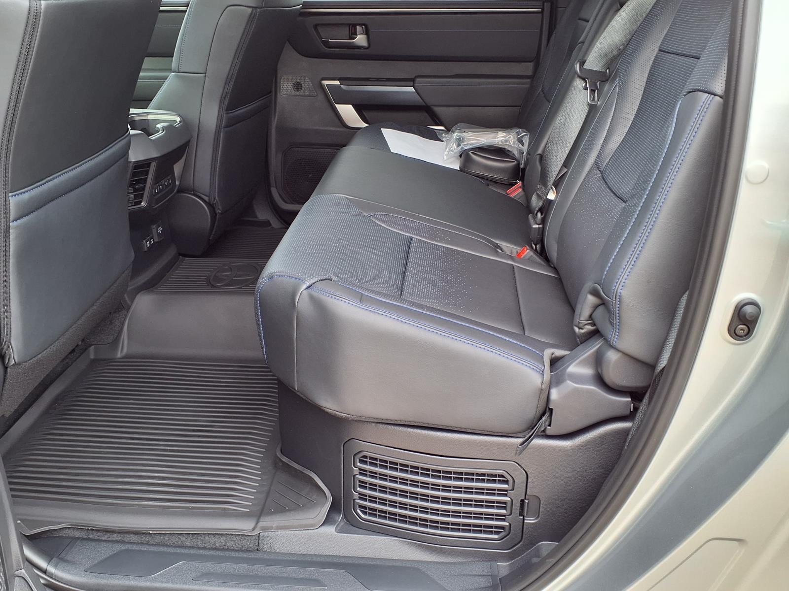 CrewMax rear seats can be folded up for additional cargo carrying capability while maintaining a comfortable seating back angle and lowering load the height by more than 11 inches. Both Double Cab and CrewMax are available with a bench or bucket seats for the front row.