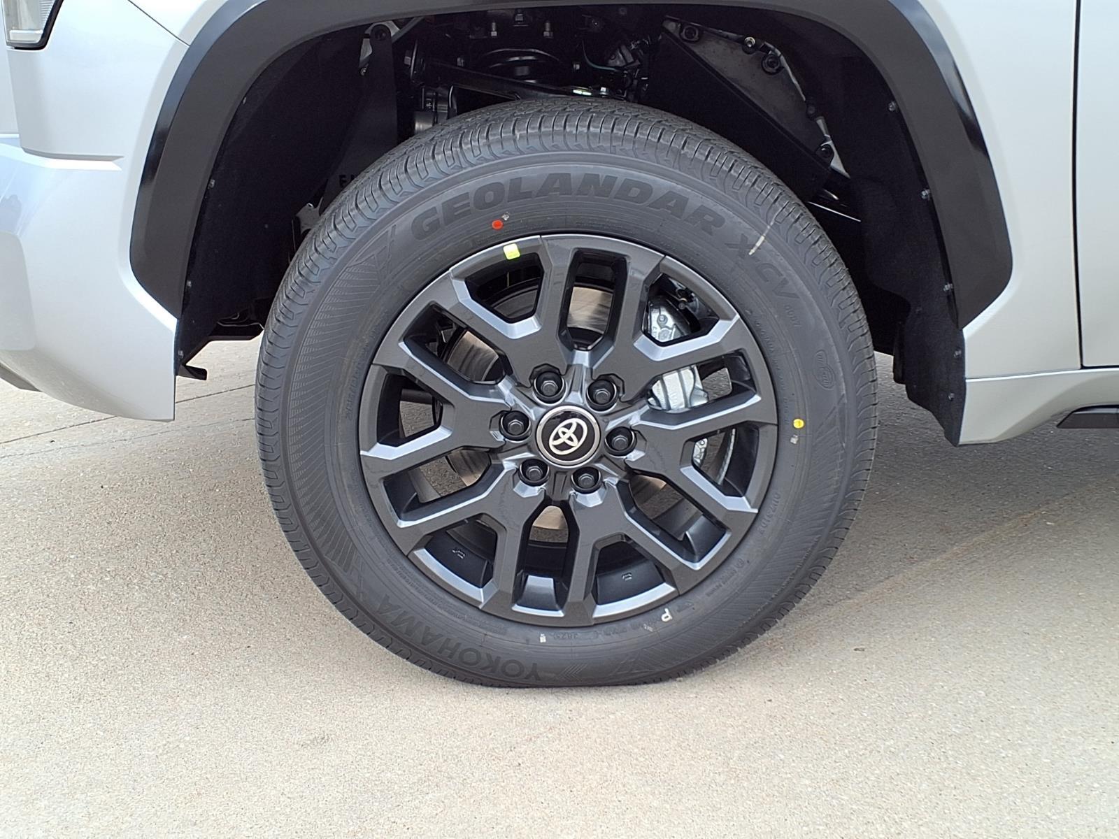 The brawny chiseled look of the Tundra is the ideal platform for the optional TRD Pro Off-Road Package. Model specific features include: split five-spoke TRD Off-Road Package alloy wheels with black accents and all-terrain P275/65R18 tires, trail-tuned Bilstein shock absorbers, engine skid plate, fuel tank skid plate, front tow hooks, LED fog lights (SR5), TRD Off Road floor mats (SR5/Limited), and bed side TRD Off-Road decal.