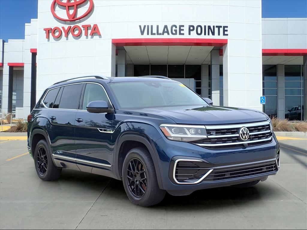 Experience the perfect blend of power, luxury, and advanced technology with the 2022 Volkswagen Atlas 3.6L V6 SEL Premium R-Line in striking Tourmaline Blue Metallic. Designed for drivers who demand versatility and comfort, this Atlas features a robust 3.6L V6 engine paired with an 8-speed automatic transmission and all-wheel drive, ensuring confident handling on any terrain. The R-Line trim adds a sporty edge with aluminum performance wheels and a sleek rear spoiler, making every drive stylish and dynamic. Inside, indulge in premium leather seating with heated front and rear seats, power-adjustable driver and passenger seats with memory settings, and a spacious third-row seat perfect for family or friends. The panoramic sunroof floods the cabin with natural light, creating an open, airy atmosphere. Safety and convenience are paramount with adaptive cruise control, blind spot monitoring, lane keeping assist, and a comprehensive suite of collision mitigation technologies. The aerial view display system and automatic parking make maneuvering effortless, while the hands-free power liftgate and remote engine start add everyday ease. Stay connected and entertained with a premium sound system, navigation, Bluetooth integration, and a built-in WiFi hotspot. The 2022 Volkswagen Atlas SEL Premium R-Line is the ideal SUV for those who value performance, luxury, and cutting-edge features in one commanding package. Be sure to call or visit Village Pointe Toyota to discover more. Your new favorite vehicle awaits - dont let someone else drive it home!