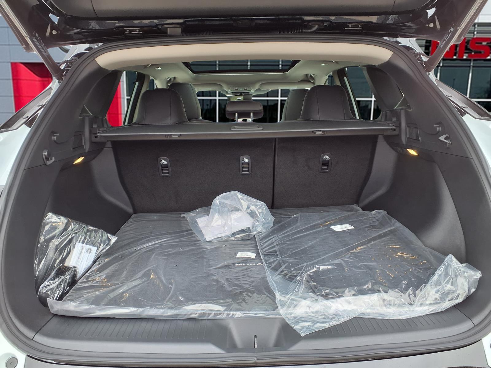 The new Murano's cargo area has been reconfigured to provide a projected best storage space in the segment (with seats up). The rear cargo area, for example, accommodates four large suitcases, while the rear seats fold flat for greater cargo convenience. With the easy rear seat release and available power rear seat return, Murano converts from people hauler to cargo ship or back within seconds. All configurations can be done from the back, with no walking to each door.