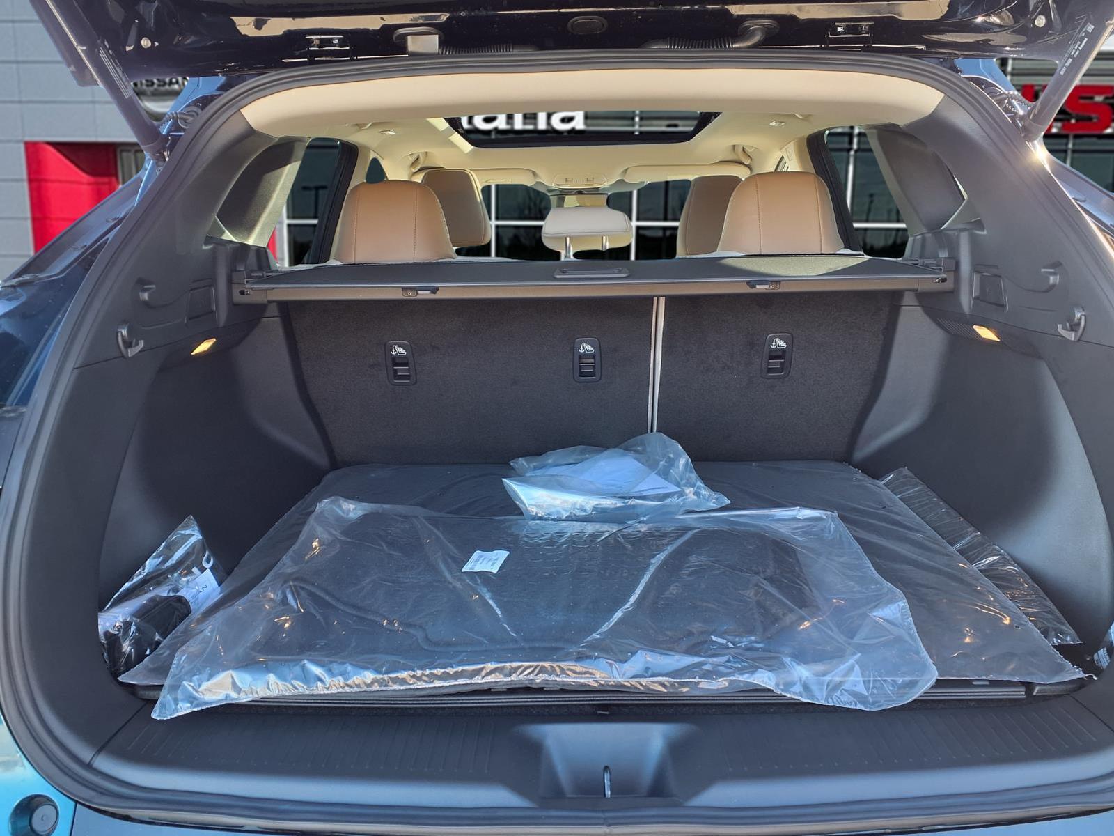 The new Murano's cargo area has been reconfigured to provide a projected best storage space in the segment (with seats up). The rear cargo area, for example, accommodates four large suitcases, while the rear seats fold flat for greater cargo convenience. With the easy rear seat release and available power rear seat return, Murano converts from people hauler to cargo ship or back within seconds. All configurations can be done from the back, with no walking to each door.