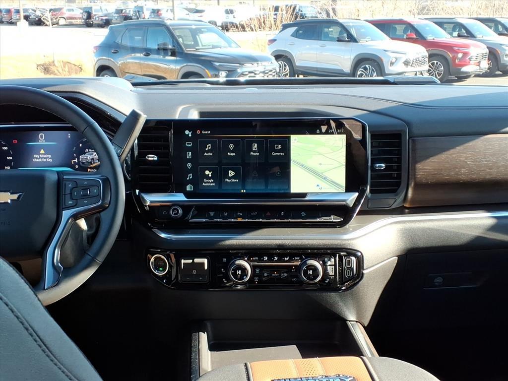Demo/CTP units may have more mileage than a normal new retail unit. Gooseneck/5th Wheel Prep Package (Black Chevytec Spray-on Bedliner), High Country Premium Package (Power Sunroof), Snow Plow Prep/Camper Package (220 Amp Alternator), Suspension Package, Up-Level Rear Seat with Storage Package, Z71 Off-Road Package (Hill Descent Control and Off-Road Suspension), 10-Speed Automatic, 4WD, Jet Black / Umber Leather, 10-Way Power Driver Seat Adjuster with Lumbar, 10-Way Power Passenger Seat Adjuster with Lumbar, 120-Volt Bed Mounted Power Outlet, 120-Volt Interior Power Outlet, 170 Amp Alternator, 1st and 2nd Row All-Weather Floor Liners, 4-Wheel Disc Brakes, 6Rectangular Chromed Tubular Assist Steps, 7 Speakers, 720 Cold-Cranking Amps Heavy-Duty Battery, ABS brakes, Air Conditioning, Alloy wheels, AM/FM radio: SiriusXM with 360L, Apple CarPlay/Android Auto, Auto High-beam Headlights, Auto-dimming door mirrors, Auto-Dimming Inside Rear-View Mirror, Auto-dimming Rear-View mirror, Automatic temperature control, Bed View Camera with Two Trailer Camera Provisions, Bluetooth� For Phone, Bodyside moldings, BOSE Premium 7-Speaker Sound System, Brake assist, Bumpers: body-color, Chevrolet Connected Access Capable, Chrome Door Handles, Chrome Mirror Caps, Color-Keyed Carpeting Floor Covering, Compass, Deep-Tinted Glass, Delay-off headlights, Driver door bin, Driver Memory, Driver vanity mirror, Dual front impact airbags, Dual front side impact airbags, Durabed Pickup Bed, Electric Rear-Window Defogger, Electronic Stability Control, Emergency communication system: OnStar, Floor-Mounted Center Console, Front anti-roll bar, Front Bucket Seats, Front Carpeted Floor Mats, Front Center Armrest, Front Chrome Recovery Hooks, Front dual zone A/C, Front fog lights, Front LED Fog Lamps, Front Rain-Sensing Wipers, Front reading lights, Front wheel independent suspension, Fully automatic headlights, Garage door transmitter, Genuine wood console insert, Genuine wood dashboard insert, Genuine wood door panel insert, Heated 2nd Row Outboard Seats, Heated door mirrors, Heated Driver and Front Outboard Passenger Seating, Heated front seats, Heated rear seats, Heated Steering Wheel, Heated steering wheel, Hitch Guidance with Hitch View, Illuminated entry, in-Vehicle Trailering App System, Keyless Open and Start, LED Cargo Area Lighting, LED Smoked Amber Roof Marker Lamps, Low tire pressure warning, Manual Tilt and Telescoping Steering Column, Memory seat, Occupant sensing airbag, OnSta