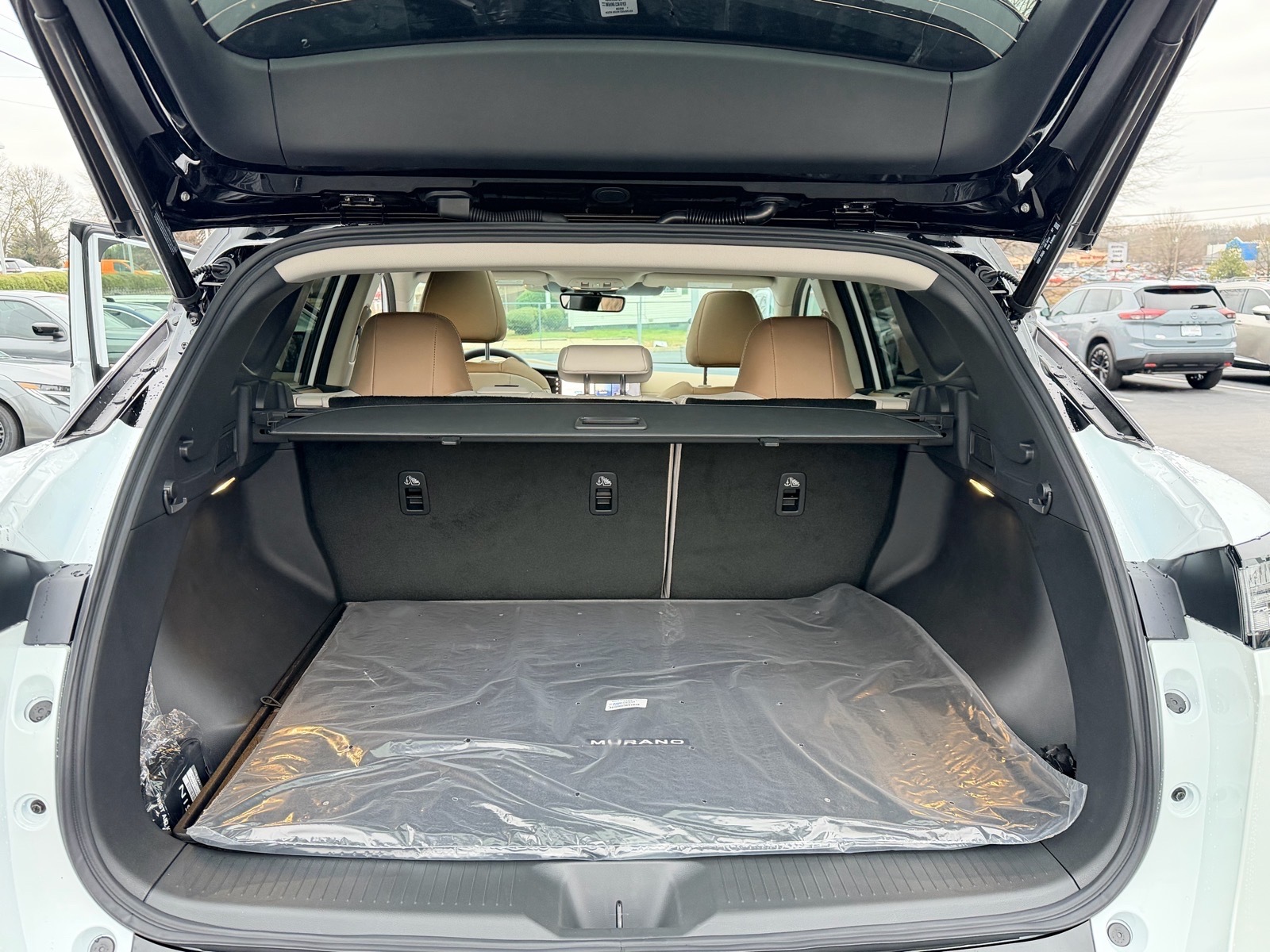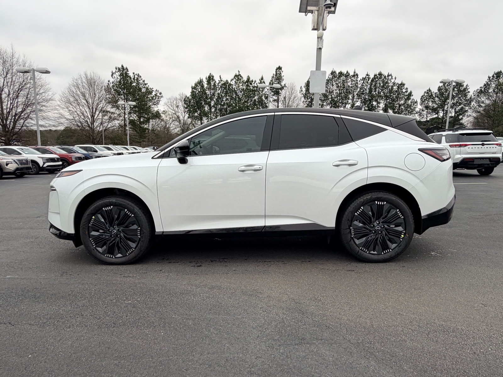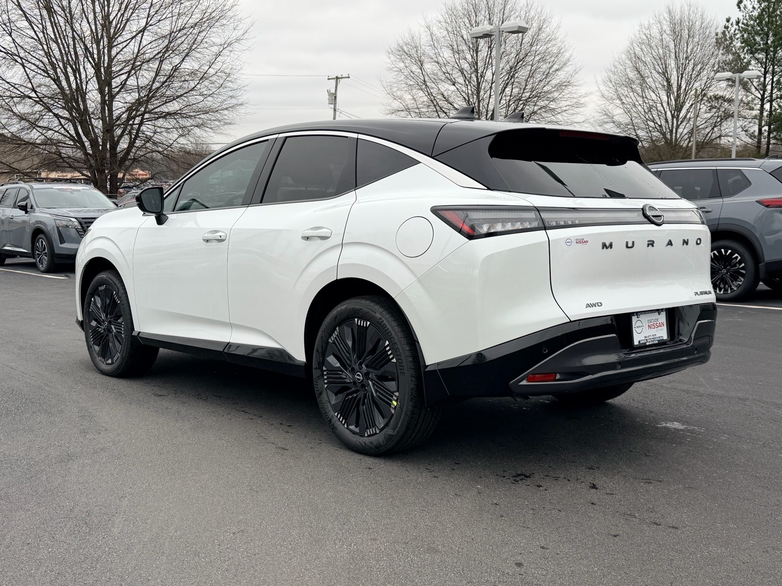 This NEW 2026 Everest White Pearl Tricoat/Super Black Nissan Murano Platinum I4 9-Speed Automatic AWD is well equipped and includes these features and benefits: 9-Speed Automatic, AWD, 10 Speakers, 2-Tone w/Premium Paint, 21Alloy Wheels, 3-Position Cargo Area Protector, 3D Around View Monitor, 4-Wheel Disc Brakes, ABS brakes, Air Conditioning, Alloy wheels, AM/FM radio: SiriusXM w/360L, Auto High-beam Headlights, Auto tilt-away steering wheel, Auto-dimming Rear-View mirror, Automatic temperature control, Brake assist, Bumpers: body-color, Cargo Net, Cargo Package, Carpeted Floor & Cargo Mats, Child-Seat-Sensing Airbag, Compass, Delay-off headlights, Driver Attention Warning, Driver Distraction Warning, Driver door bin, Driver vanity mirror, Dual front impact airbags, Dual front side impact airbags, Electronic Stability Control, Emergency communication system: NissanConnect Services, First Aid Kit, Four wheel independent suspension, Front anti-roll bar, Front Bucket Seats, Front Center Armrest, Front dual zone A/C, Front reading lights, Fully automatic headlights, Garage door transmitter: HomeLink, Heads-Up Display, Heated & Ventilated Front Bucket Seats w/Massage, Heated door mirrors, Heated front seats, Heated rear seats, Heated steering wheel, Illuminated entry, Illuminated Kick Plates, Knee airbag, Low tire pressure warning, Memory seat, Navigation system: NissanConnect with Navigation and Services, Occupant sensing airbag, Outside temperature display, Overhead airbag, Overhead console, Painted Splash Guards, Panic alarm, Passenger door bin, Passenger vanity mirror, Power door mirrors, Power driver seat, Power Liftgate, Power moonroof: Panoramic, Power passenger seat, Power steering, Power windows, ProPILOT Assist 2.1, Quilted Semi-Aniline Leather-Appointed Seat Trim, Radio data system, Radio: NissanConnect w/Hybrid Radio, Rain sensing wipers, Rear anti-roll bar, Rear reading lights, Rear seat center armrest, Rear side impact airbag, Rear window defroster, Rear window wiper, Remote keyless entry, Retractable Cargo Cover, Security system, Speed control, Speed-Sensitive Wipers, Split folding rear seat, Spoiler, Steering wheel memory, Steering wheel mounted audio controls, Tachometer, Technology Package, Telescoping steering wheel, Tilt steering wheel, Traction control, Trip computer, Turn signal indicator mirrors, Variably intermittent wipers, Ventilated front seats, Wireless Apple CarPlay/Wireless Android Auto, 9-Speed Automatic, AWD. 21/27 City/Highwa