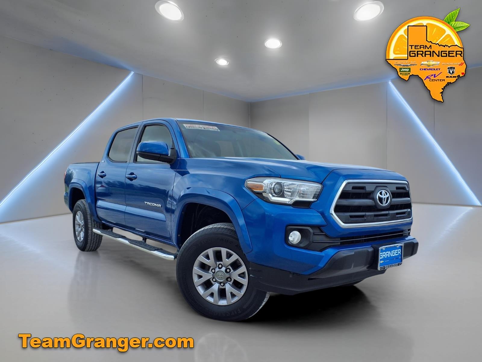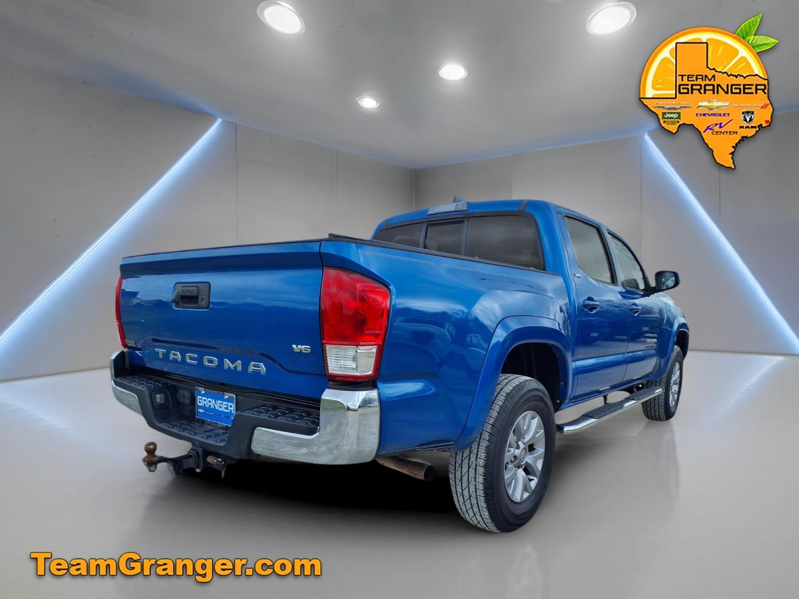 Recent Arrival! **GRANGER CERTIFIED**. Blue 2017 Toyota Tacoma 4D Double Cab 6-Speed Automatic RWD Granger Chevrolet is a full service Dealership proudly serving drivers near Southeast Texas, Lake Charles, and Sulphur Louisiana. We offer premium sales and financing solutions to help you craft and personalize your car buying experience. Whether you are in the market for something new or used, our diverse inventory lets you pick and choose from a plethora of affordable price points. Ask us about our SETX Exclusive Team Granger - DOWN PAYMENT ASSISTANCE PROGRAM!!! RESERVE this vehicle now with a deposit - WE SHIP VEHICLES AND TAKE TRADE-INS NATIONWIDE!!! ABS brakes, Air Conditioning, Alloy wheels, AM/FM radio: SiriusXM, Anti-whiplash front head restraints, Auto-Dimming Rear-View Mirror, Axle Ratio: 3.91, Brake assist, Bumpers: body-color, CD player, Compass, Driver door bin, Dual front impact airbags, Dual front side impact airbags, Electronic Stability Control, Exterior Parking Camera Rear, Front anti-roll bar, Front Bucket Seats, Front Center Armrest, Front Fog Lights, Front reading lights, Front wheel independent suspension, Illuminated entry, Keyless Entry, Knee airbag, Low tire pressure warning, Occupant sensing airbag, Outside temperature display, Overhead airbag, Overhead console, Panic alarm, Passenger door bin, Power Door Mirrors, Power steering, Power Windows, Rear step bumper, Speed control, Speed-Sensing Steering, Split folding rear seat, Steering Wheel Mounted Audio Controls, Tachometer, Telescoping steering wheel, Tilt steering wheel, Traction control, Trip computer, and Variably intermittent wipers.